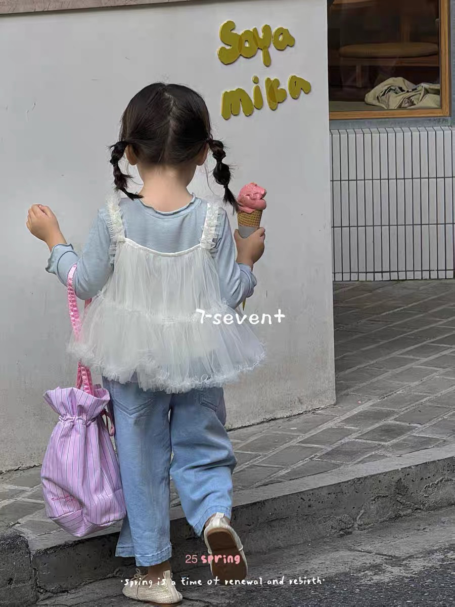 童装女童套装2025春季新款儿童洋气甜美吊带韩版牛仔裤发完