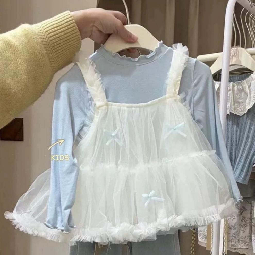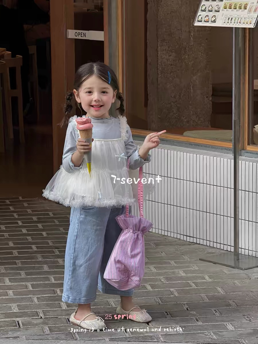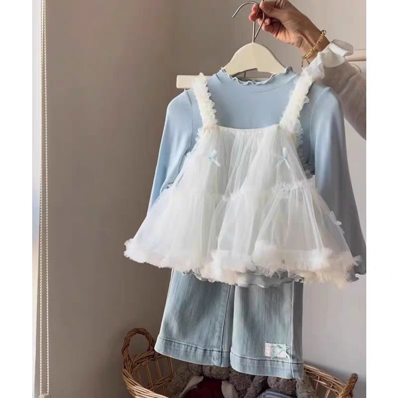 어린이 의류 소녀 세트 2025 봄 새로운 어린이 서양식 바닥 셔츠 스커트 한국 청바지 3 피스 세트