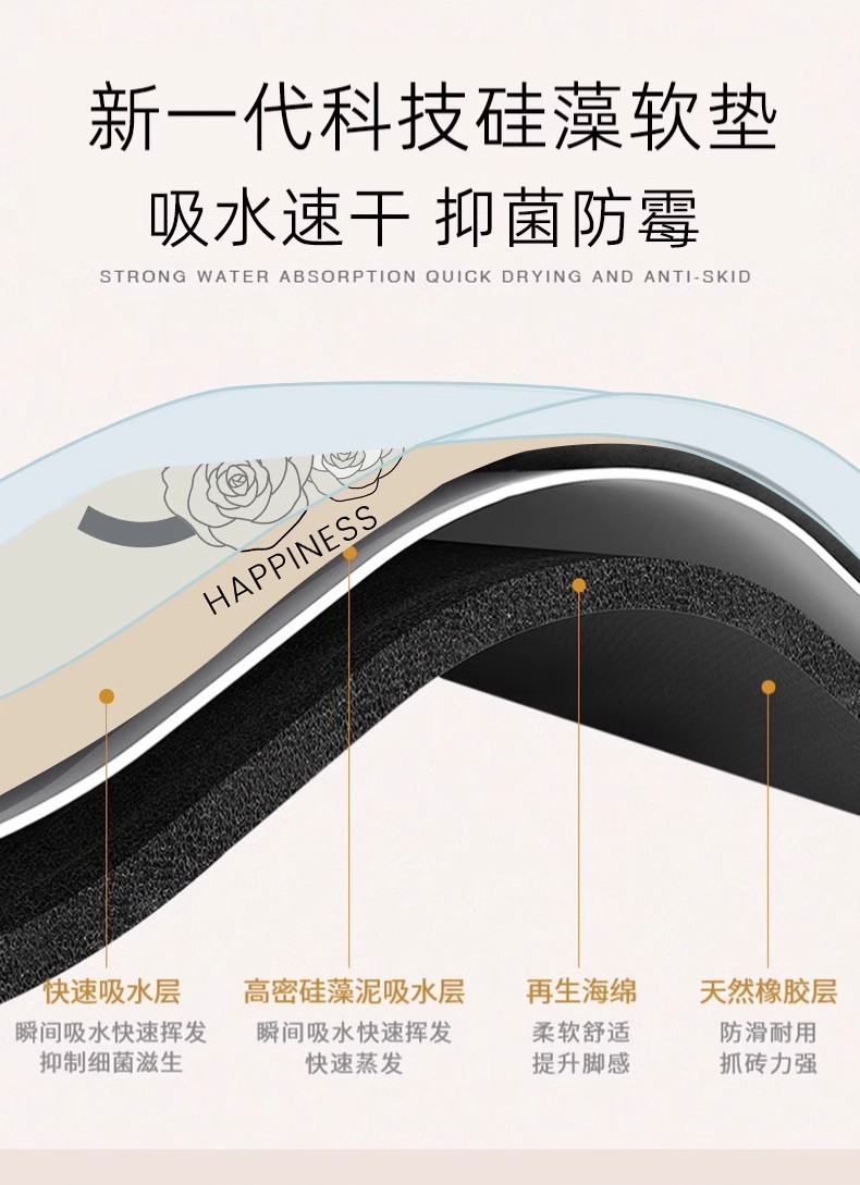 작은 Xiangfeng Diatom 진흙 욕실 흡수성 비 슬립 바닥 매트 가정용 화장실 문 높은 수준의 빠른 건조 마모 방지 카펫