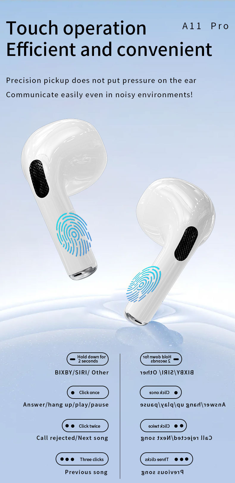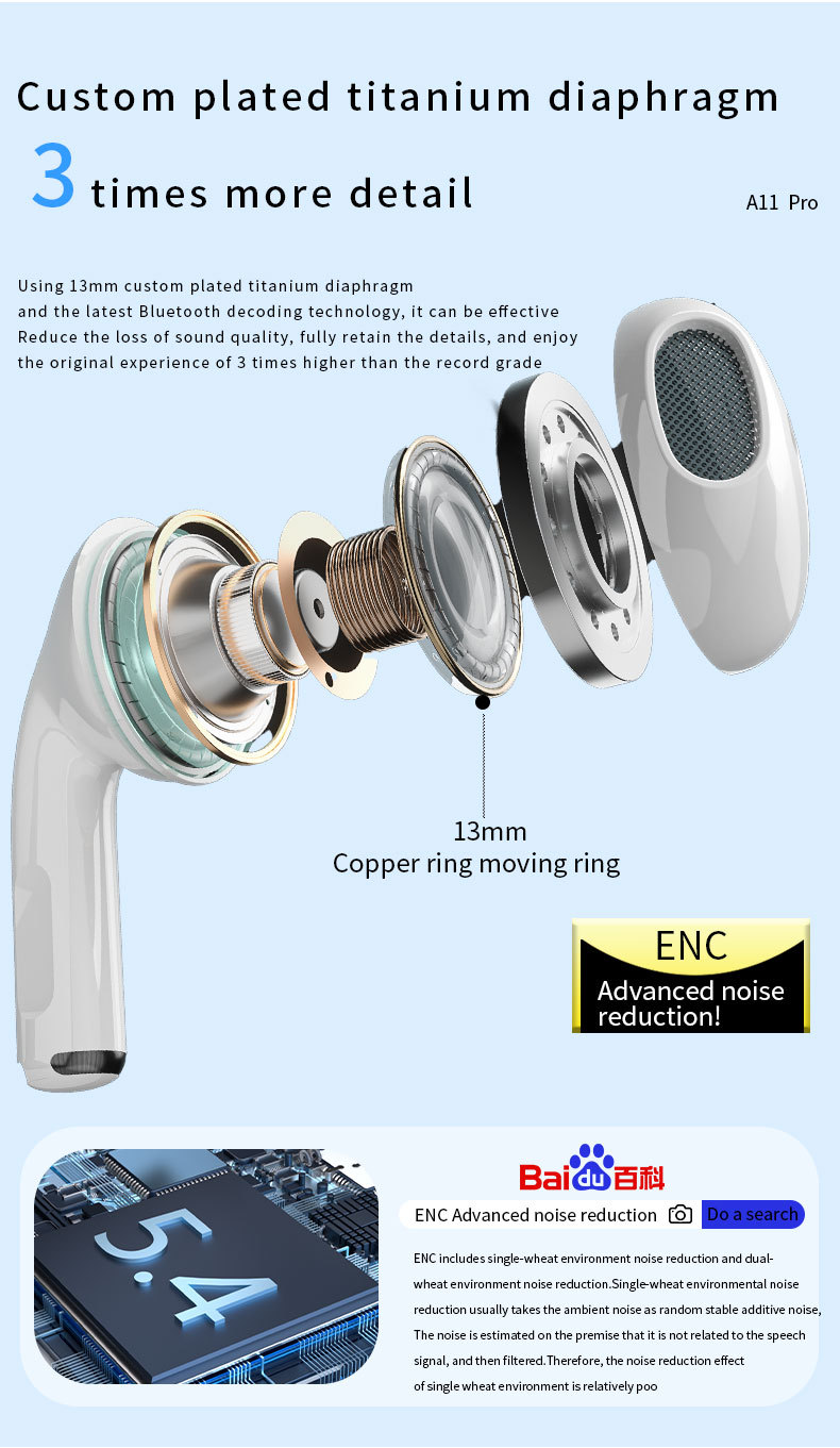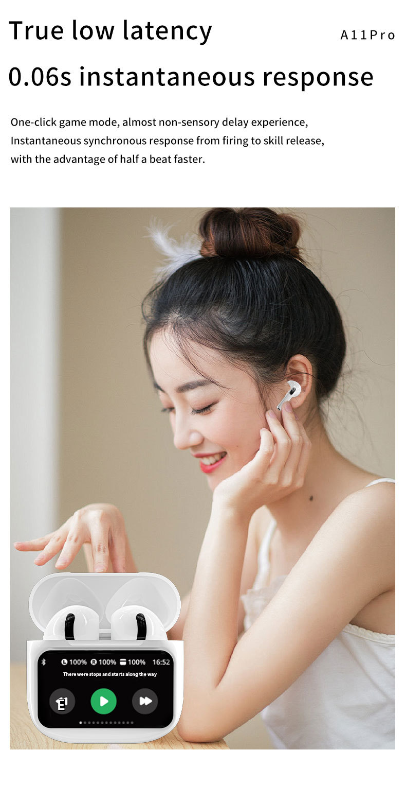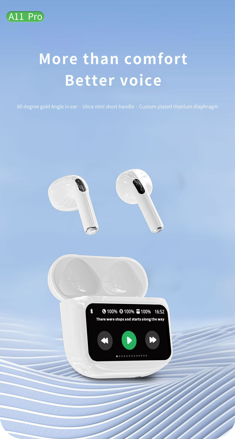 신제품 컬러 스크린 A11pro 블루투스 헤드셋 터치 스크린 통화 소음 감소 다기능 디스플레이 무선 헤드셋