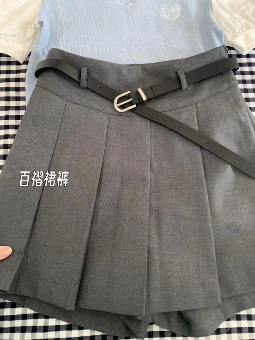 • [피닉스] 그레이 플리츠 스커트 (벨트 포함)