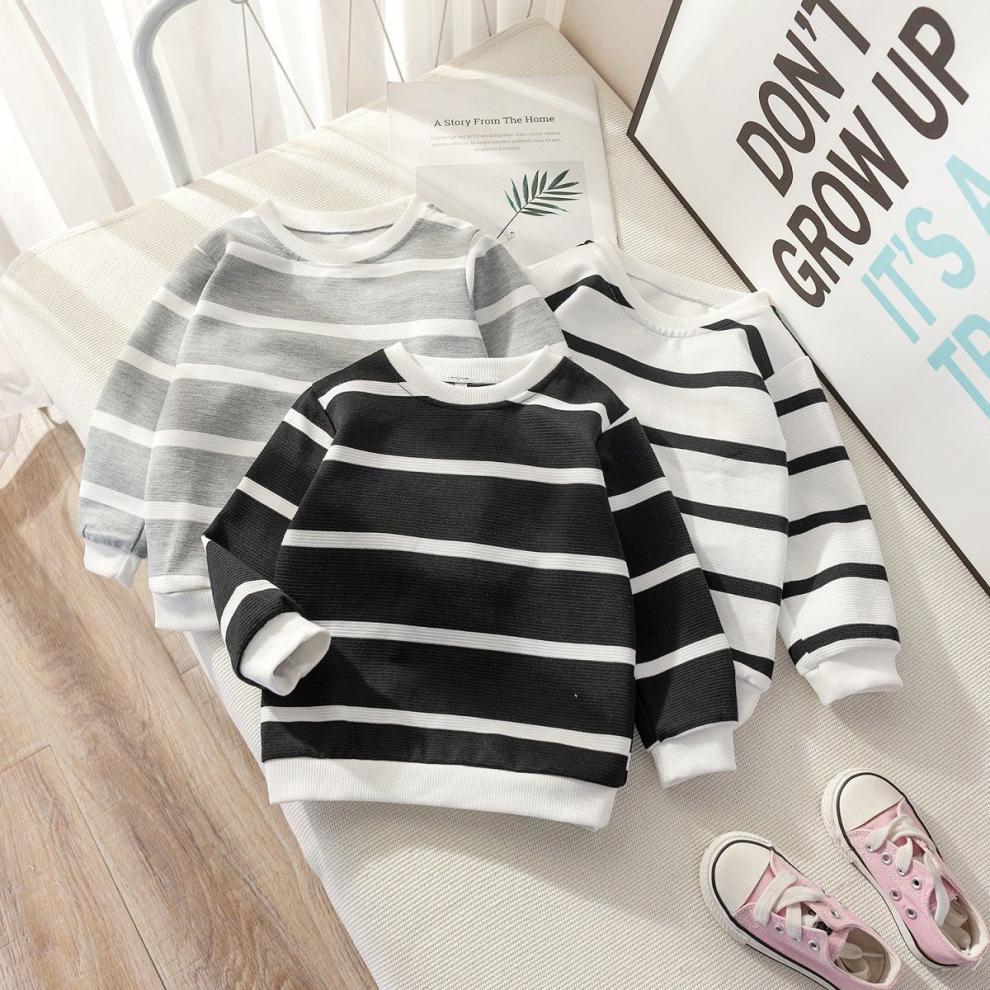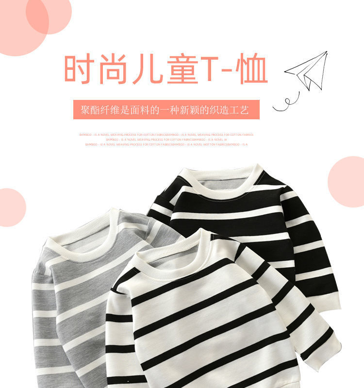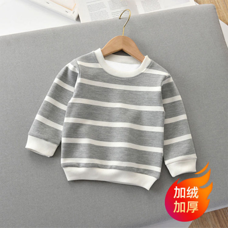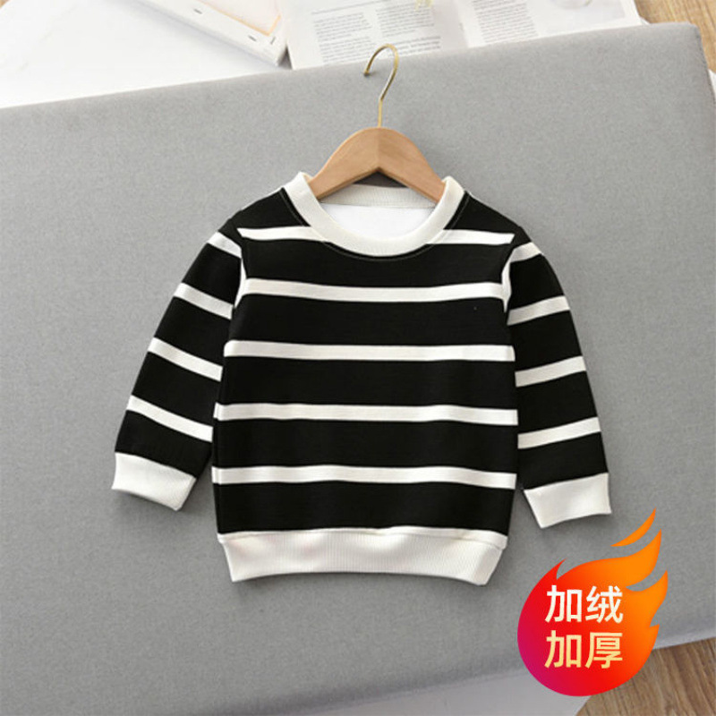 어린이 티셔츠 2025 여성 줄무늬 긴 소매 가을과 겨울 소녀 원피스 기모 새 소년 티셔츠 아동베이스 셔츠스토어 가기