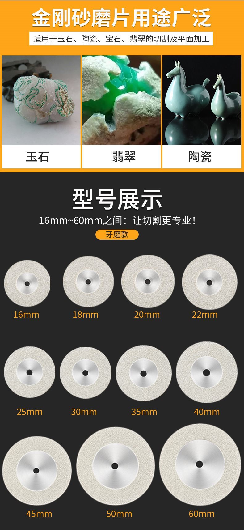 에머리 작은 톱날 다이아몬드 커팅 블레이드 전기 그라인딩 액세서리 옥 유리 옥 미니 슬라이스 그라인딩 블레이드