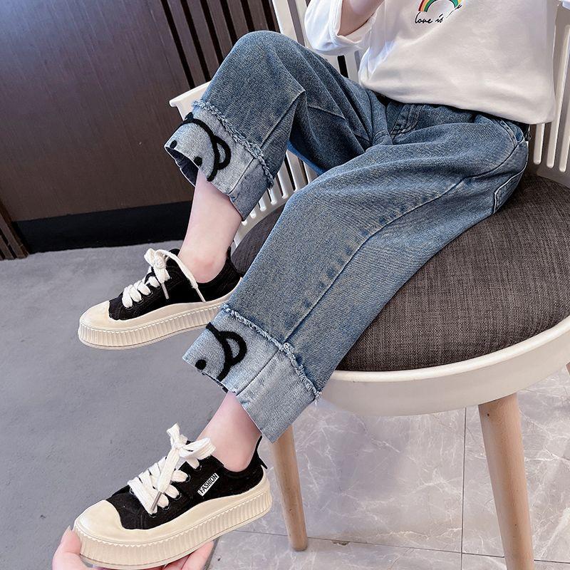 소녀의 스트레이트 다리 청바지 봄과 가을 2025 새로운 아기의 봄 느슨한 봄 어린이 외부 착용 스트레이트 다리 바지
