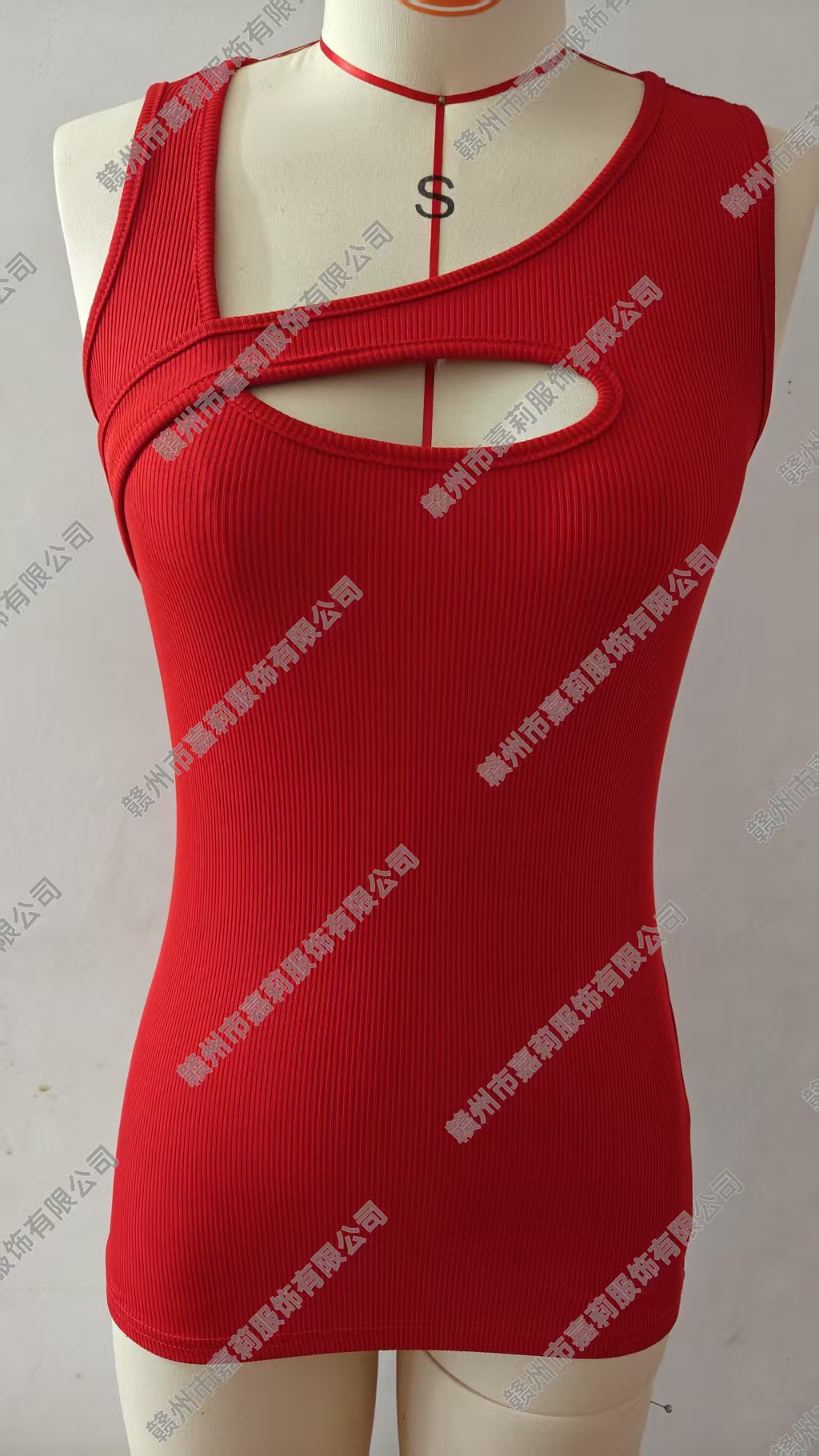 2025 유럽과 미국의 국경 간 여름 절개 여성 조끼 민소매 셔츠 갈비 섹시한 스파이스 걸스 기본 여성 티셔츠