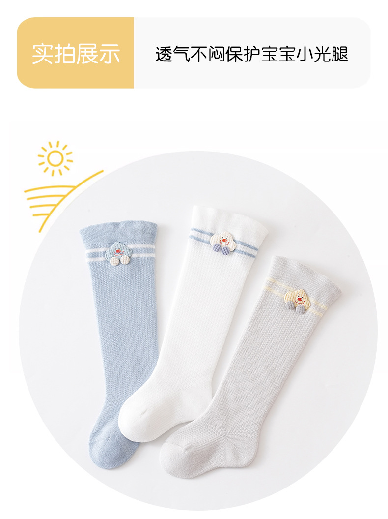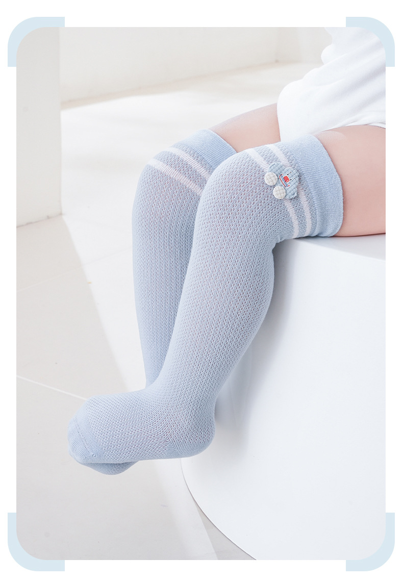 Sunseeker Yujia 봄과 여름 새로운 아기 안티 모기 양말 오버 무릎 메쉬 통기성 긴 배럴 뼈없는 만화 귀여운 줄무늬 양말