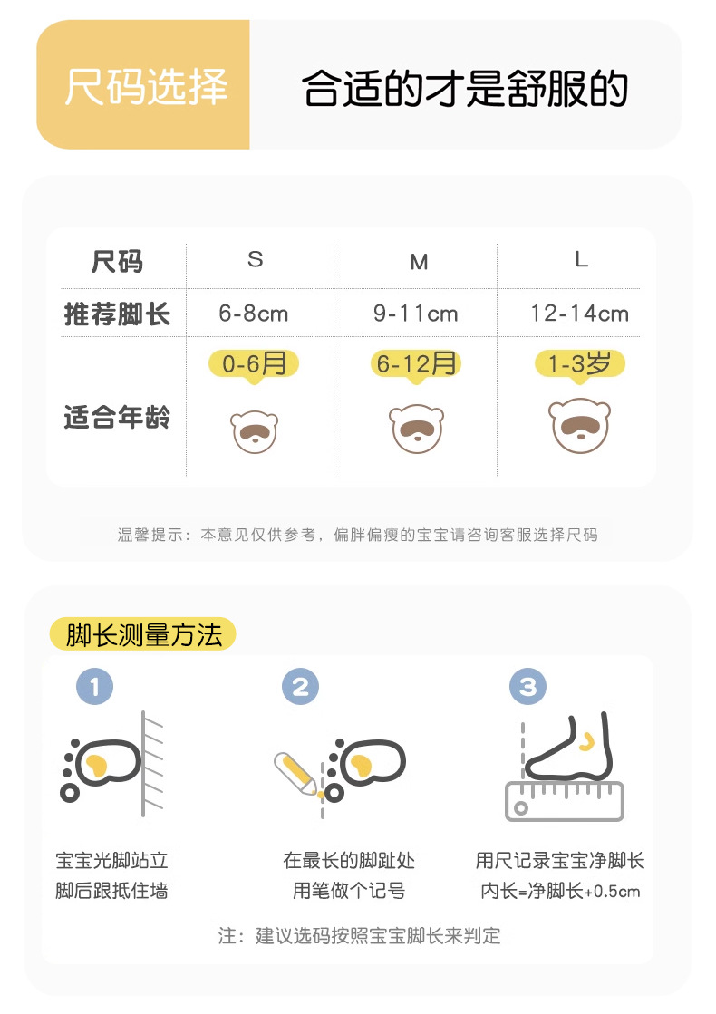 • S (발 길이 10-12cm에 적합) 6-12개월