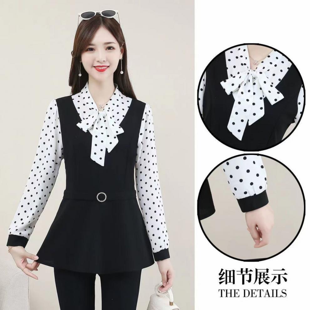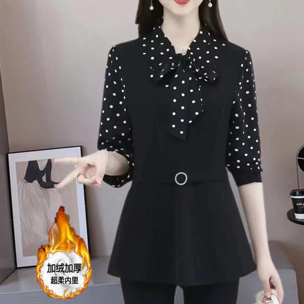 어머니의 플러스 사이즈 배를 덮고있는 나이를 줄이는 긴 소매 레이스 업베이스 셔츠 여성의 2025 봄 새로운 중간 길이 최고 트렌디스토어 가기