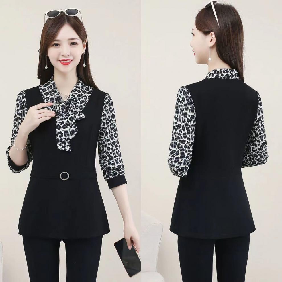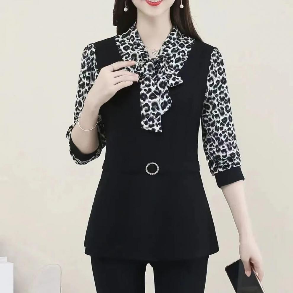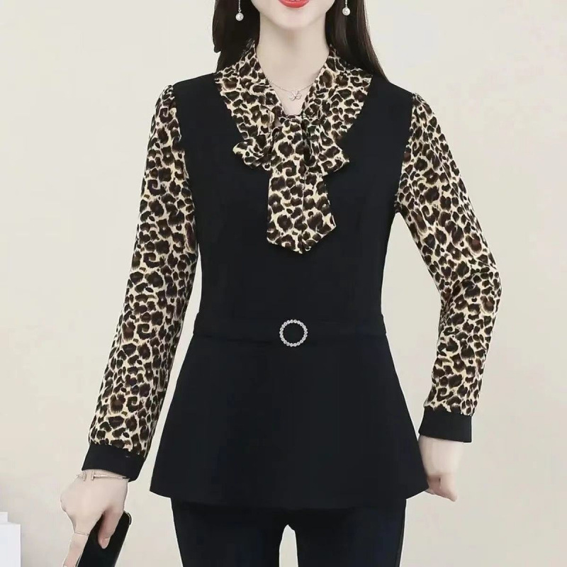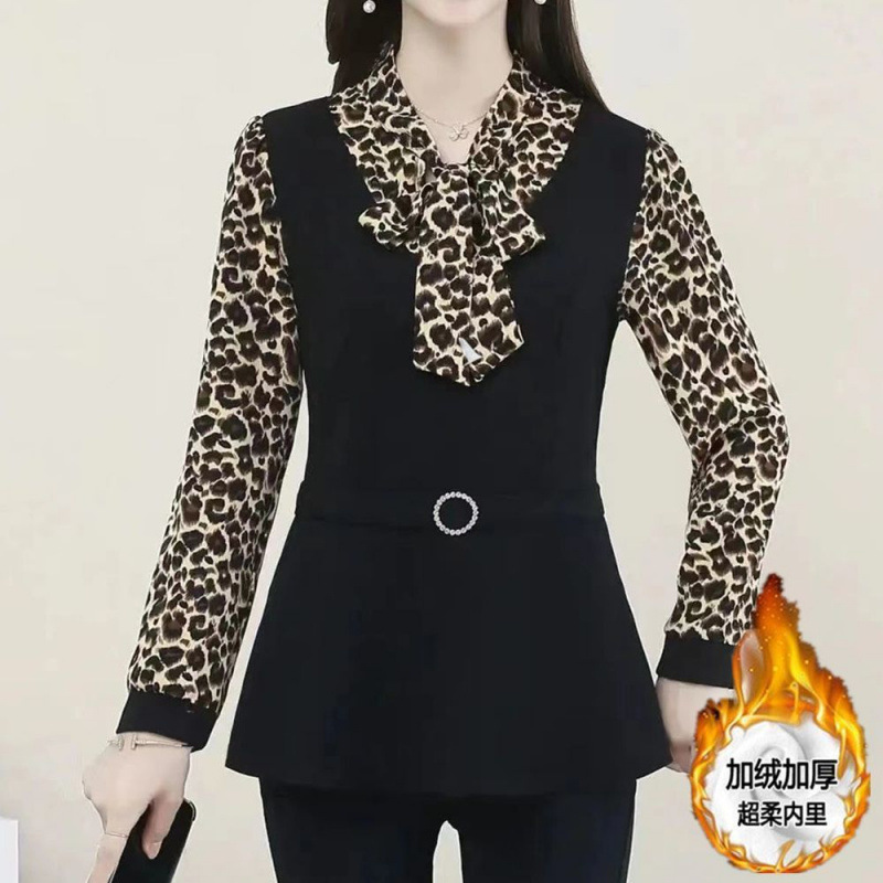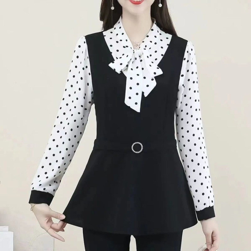 어머니의 플러스 사이즈 배를 덮고있는 나이를 줄이는 긴 소매 레이스 업베이스 셔츠 여성의 2025 봄 새로운 중간 길이 최고 트렌디