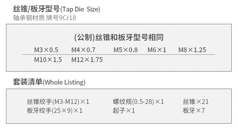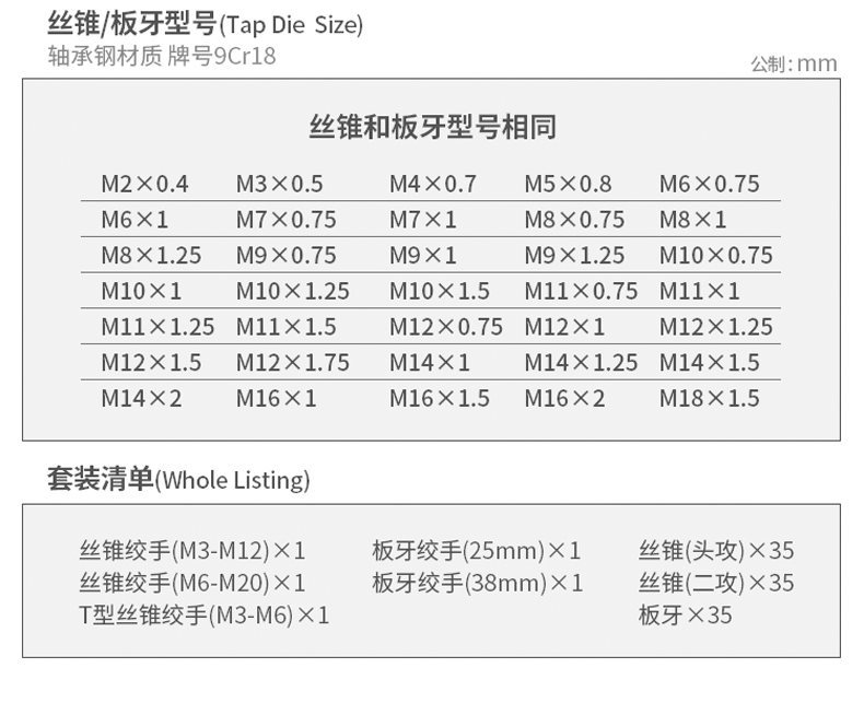 • 미터법 탭 + 드릴 비트 세트(9개 세트)