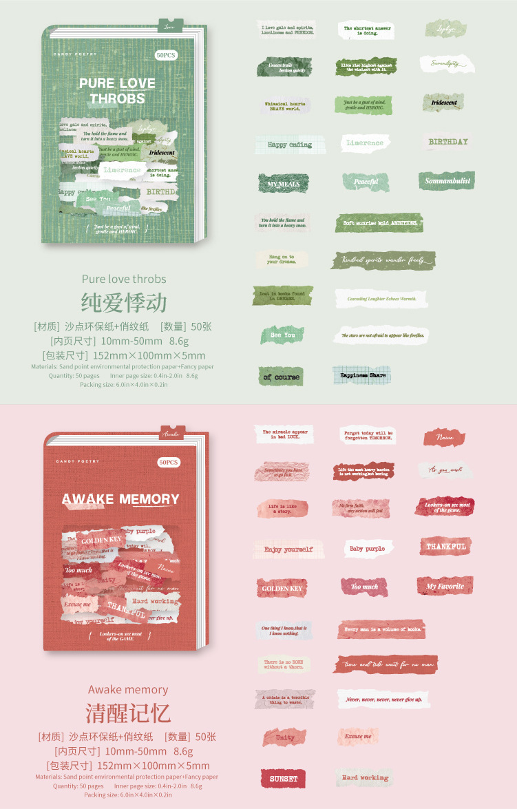 설탕시 스티커 팩 포켓 하트 추적 시리즈 영어 작은 종이 소재 손 계정 휴대 전화 다시 카드 diy 장식 콜라주