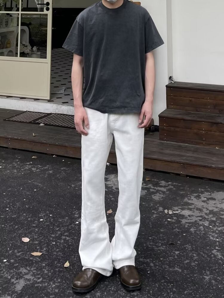 퓨어 화이트 아메리칸 스타일 하이 스트리트 바이브 슬림 핏 슬림 핏 롱 톨 딥 캐주얼 올 매치 마이크로 블레 청바지 남성용스토어 가기