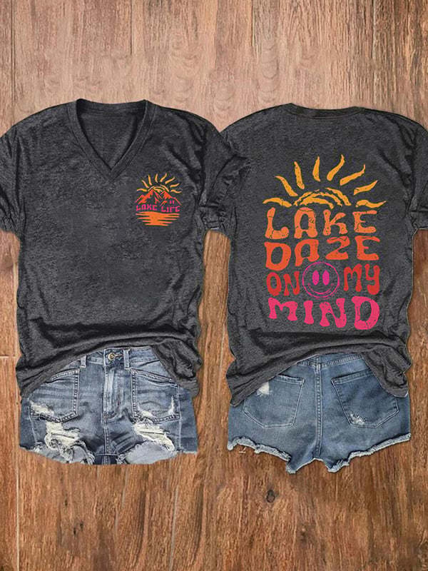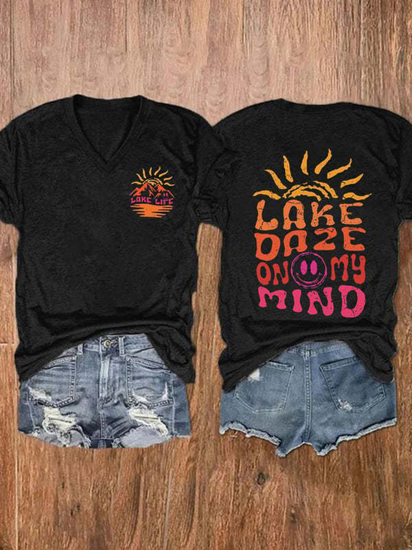 유럽과 미국 국경 아마존 독립 역 3D 디지털 인쇄 일출 시리즈 여성의 V 넥 짧은 소매 티셔츠 공장 직접 판매