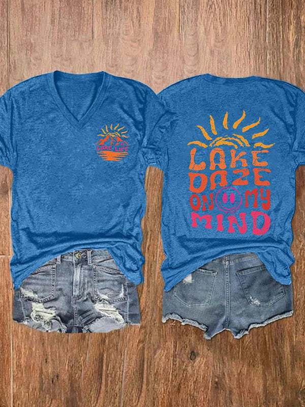 유럽과 미국 국경 아마존 독립 역 3D 디지털 인쇄 일출 시리즈 여성의 V 넥 짧은 소매 티셔츠 공장 직접 판매스토어 가기