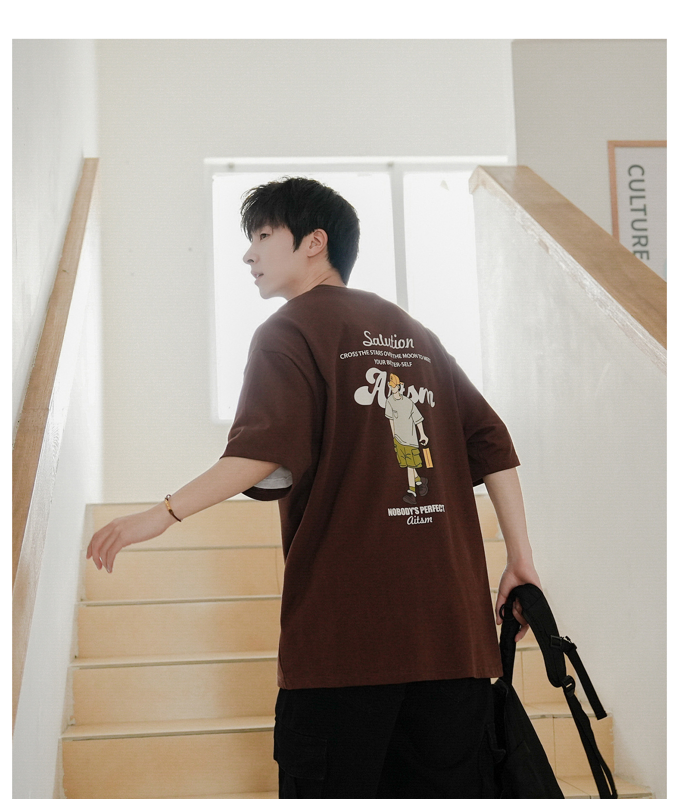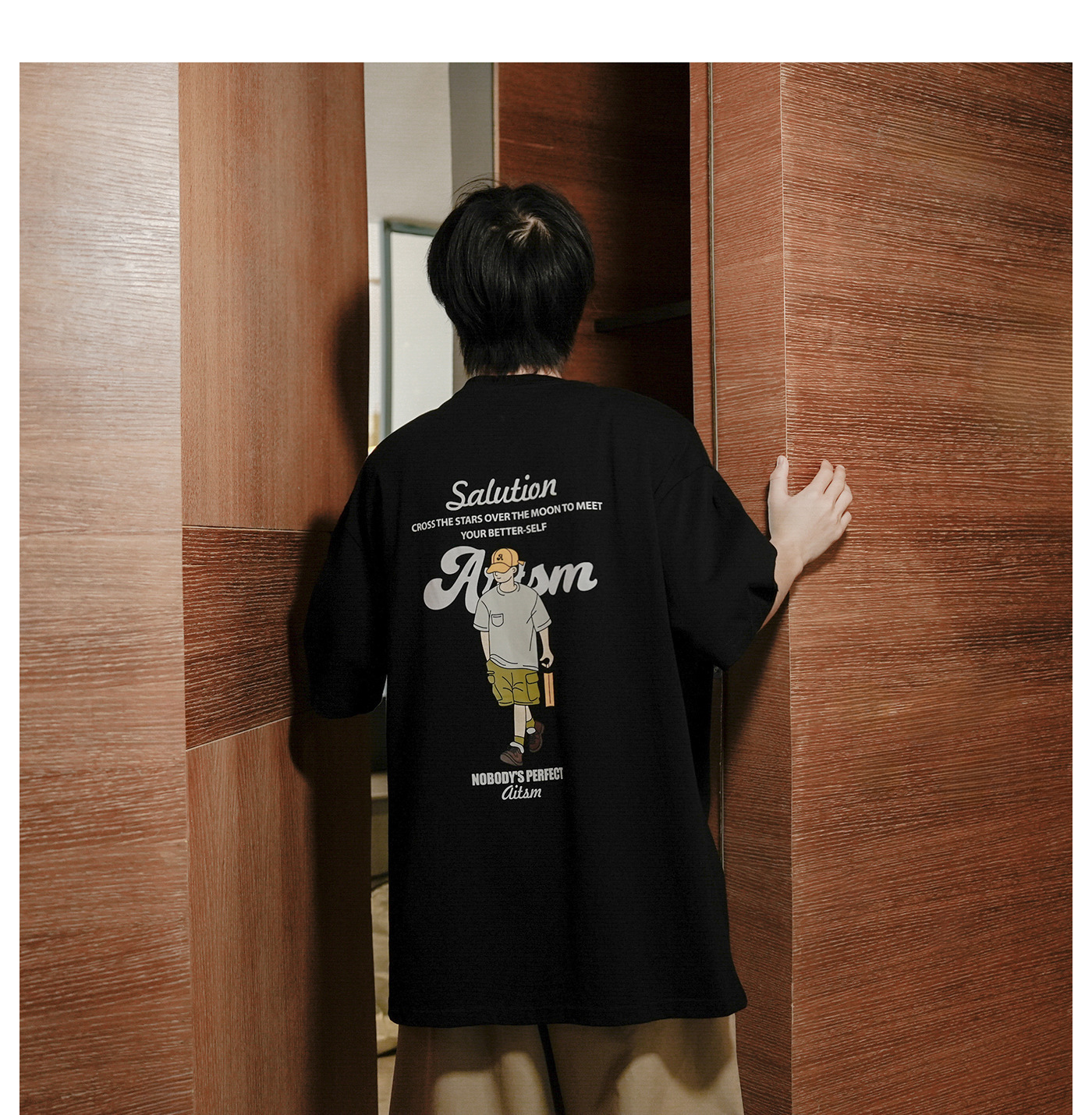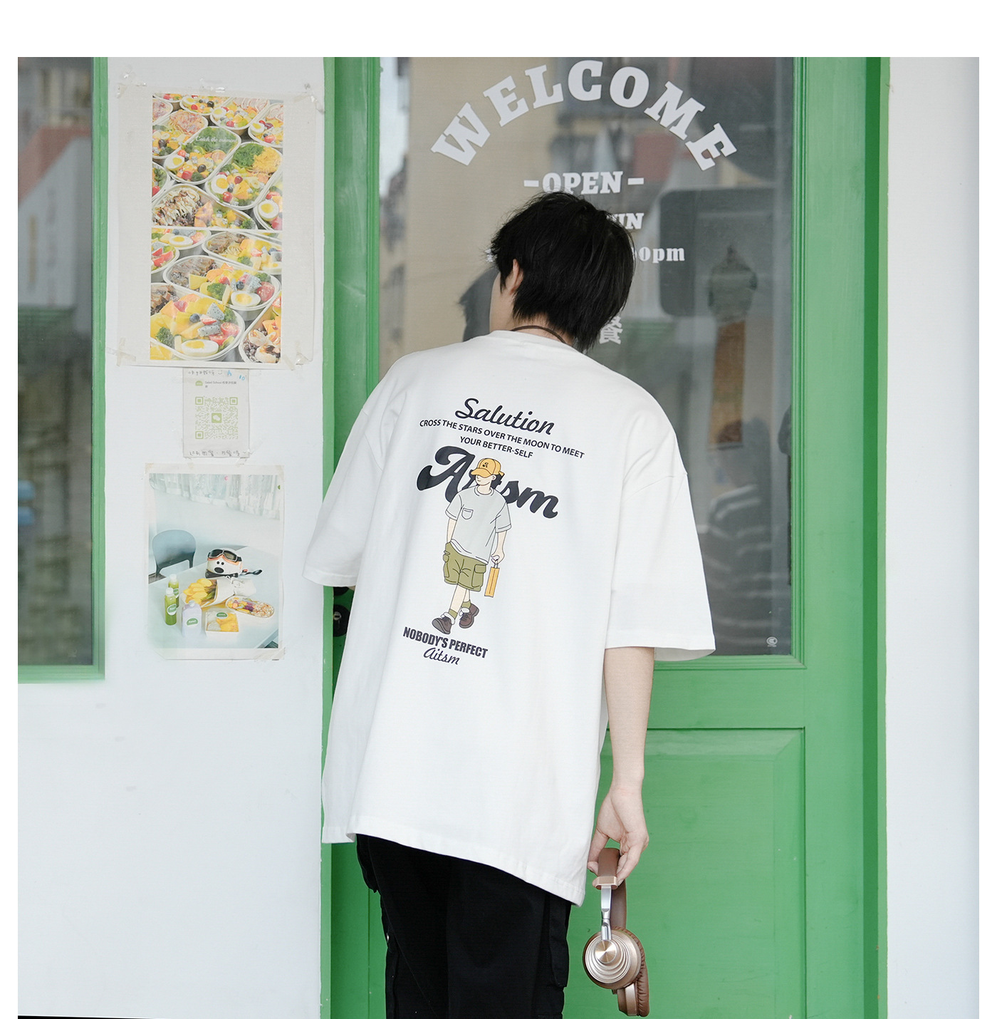 공장 직접 공급 220g 무거운 재미 인쇄 짧은 소매 티셔츠 소년 여름 느슨한면 소년 반 소매 티스토어 가기