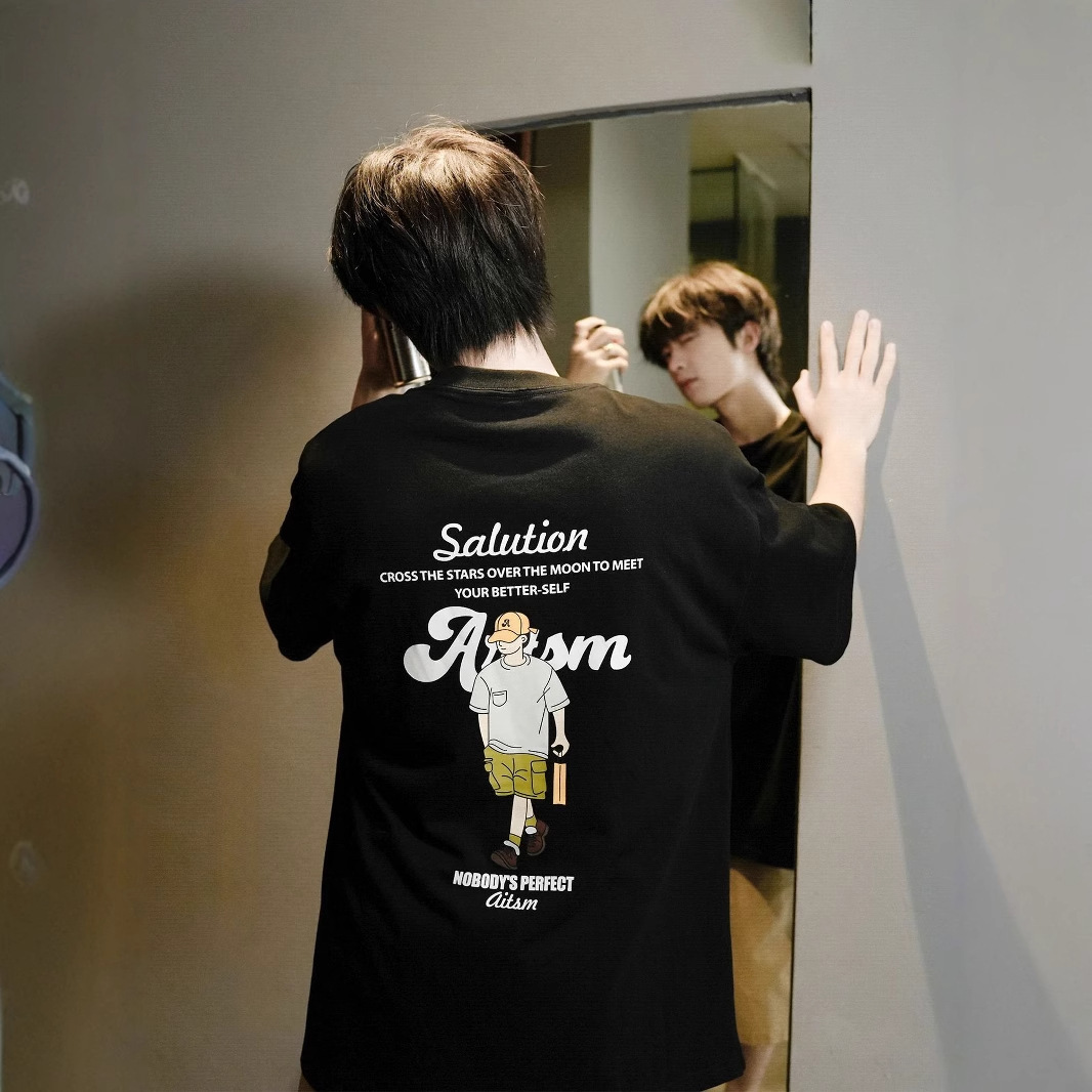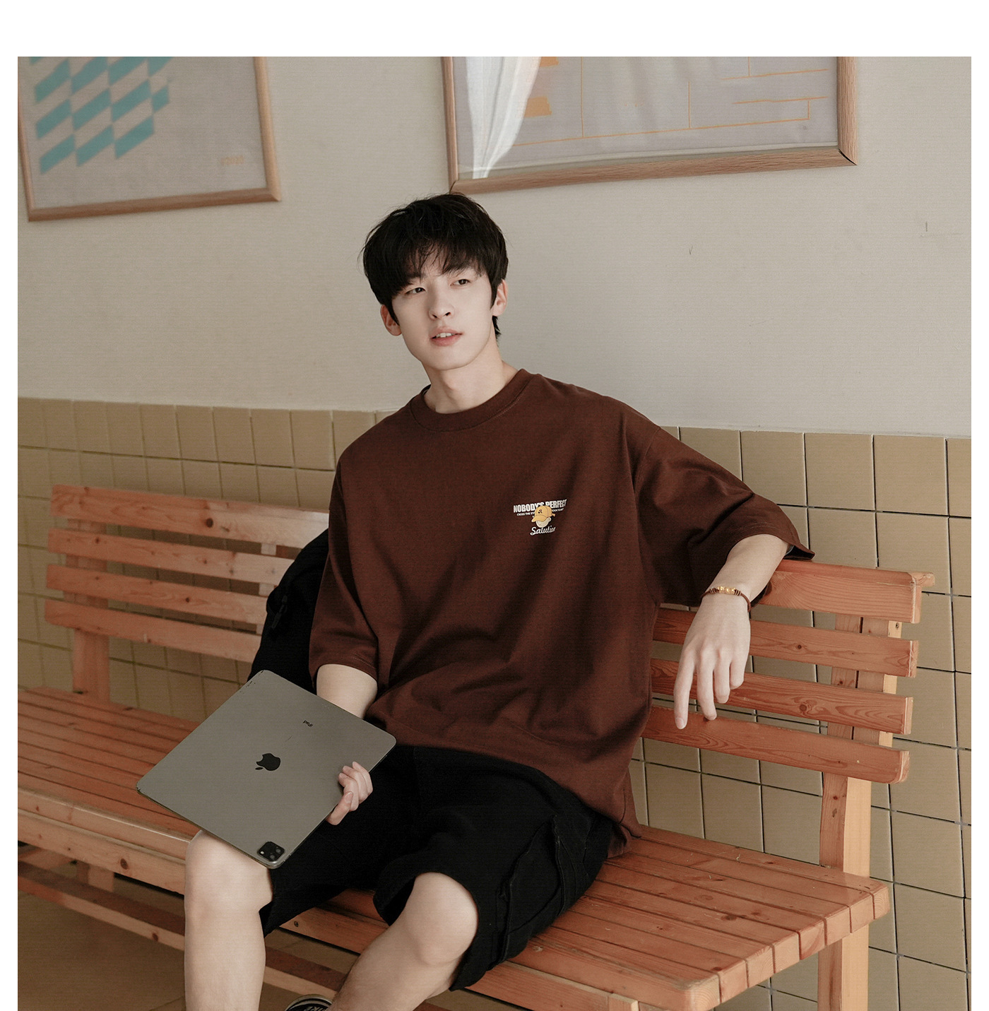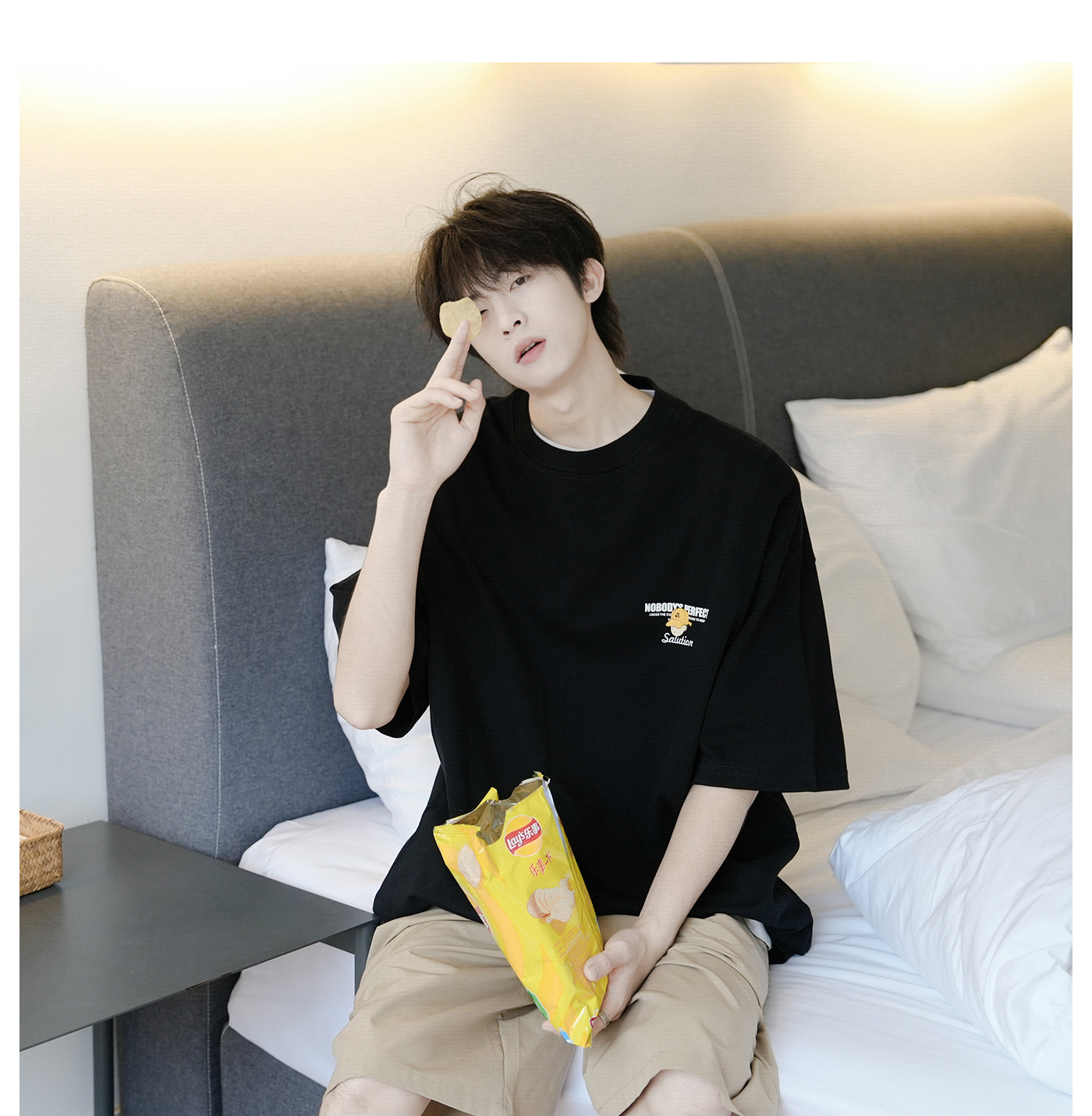 공장 직접 공급 220g 무거운 재미 인쇄 짧은 소매 티셔츠 소년 여름 느슨한면 소년 반 소매 티스토어 가기