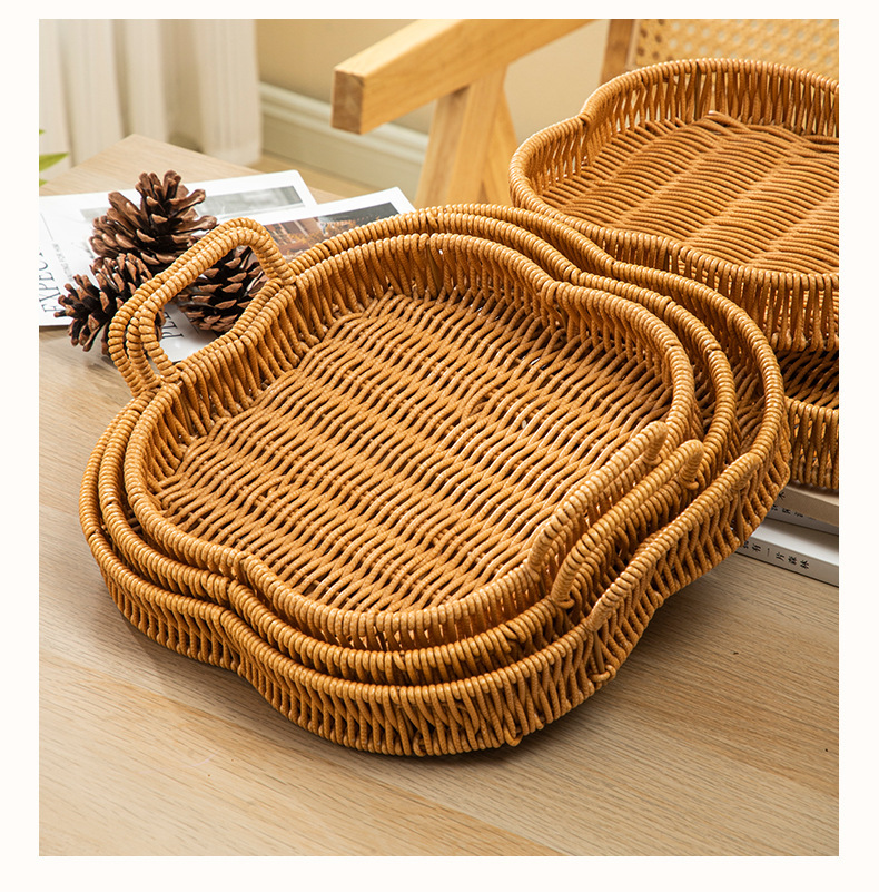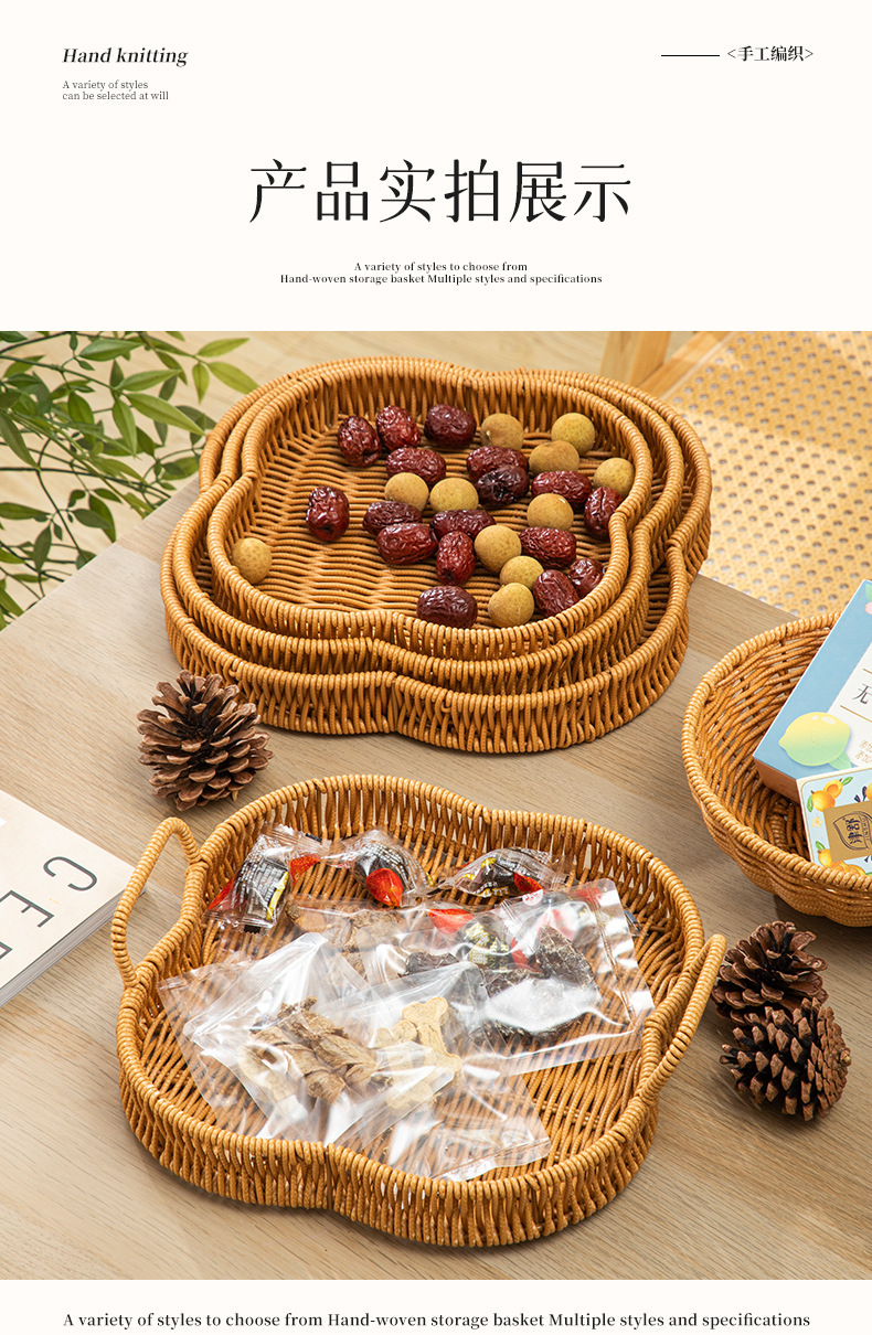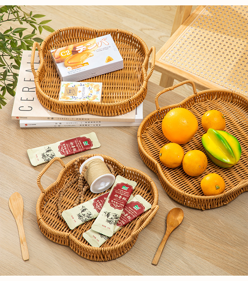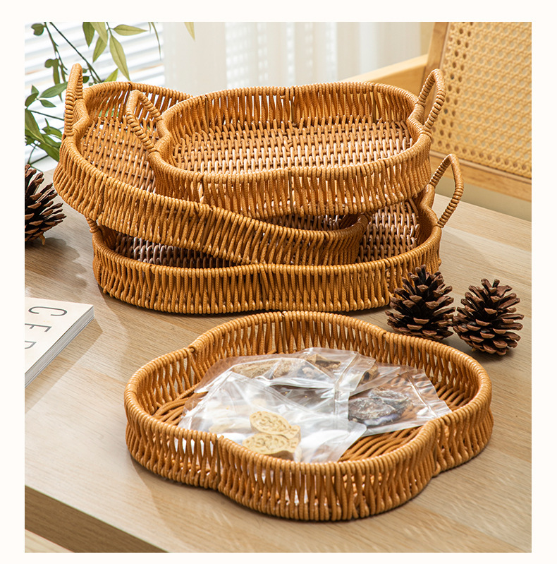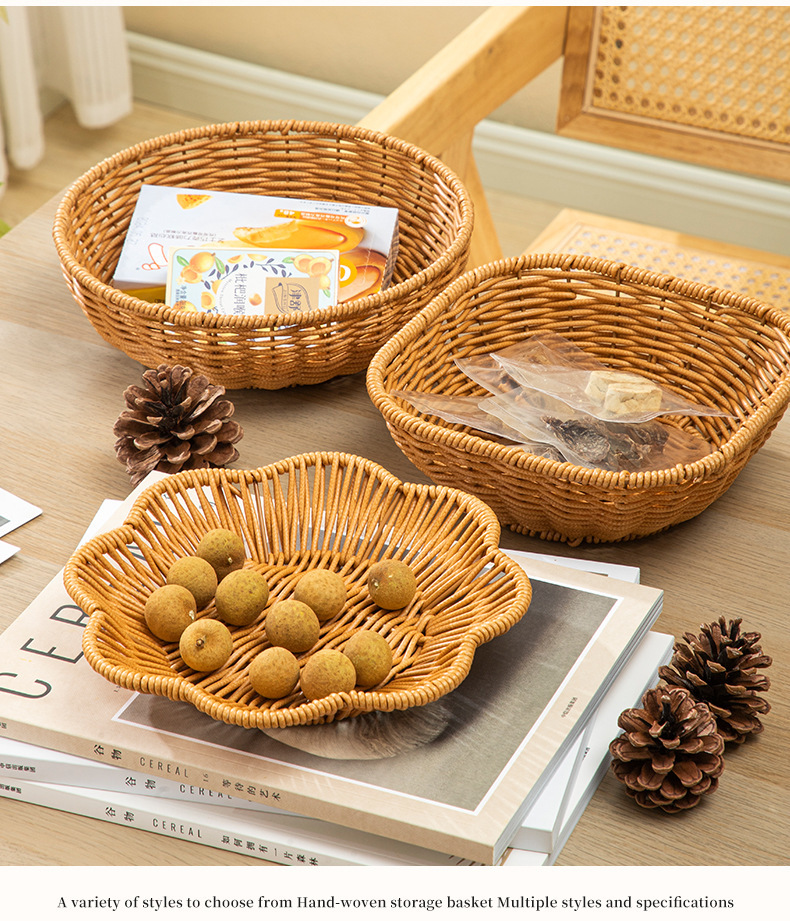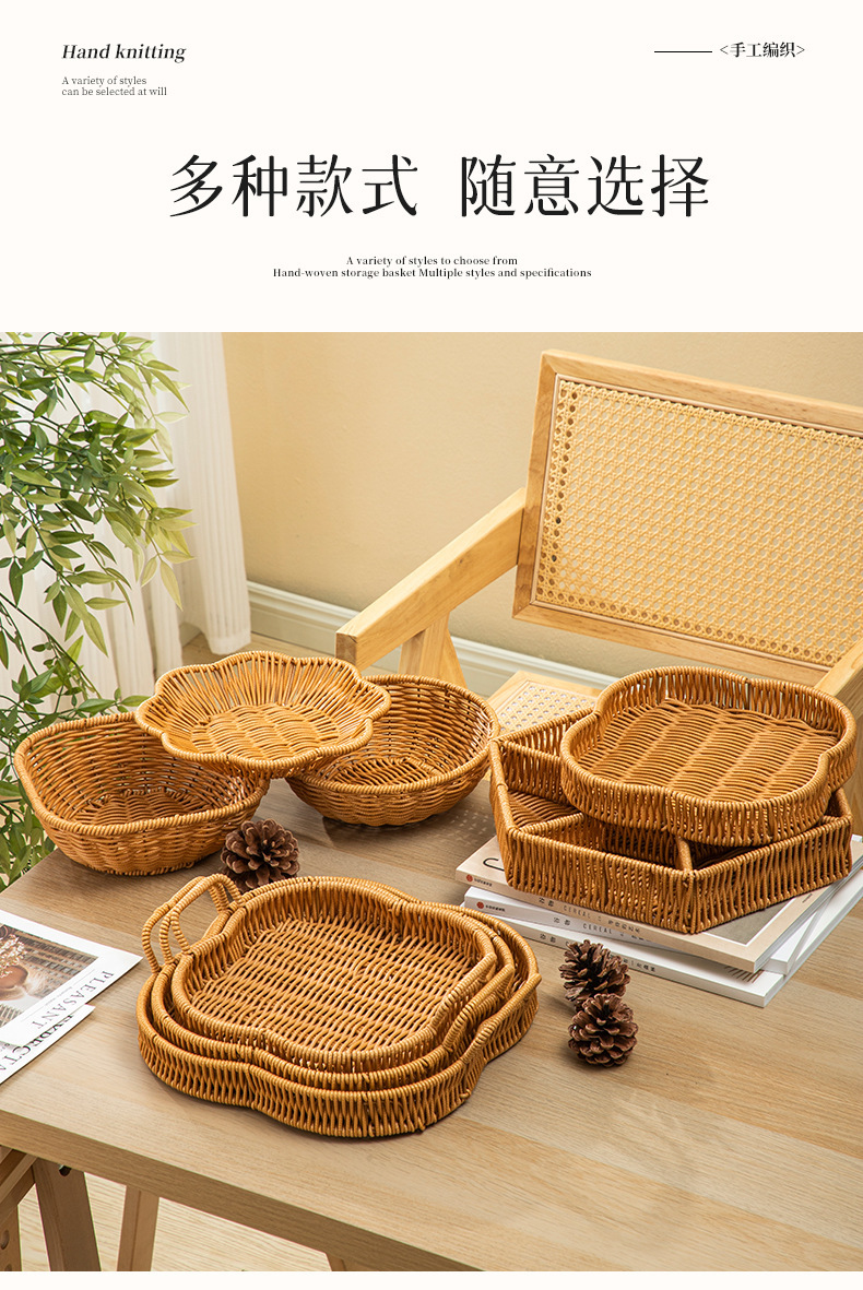 가정용 빈티지 등나무 과일 바구니 과일 접시 간식 저장 손으로 짠 플라스틱 과일 접시 빵 바구니 저장 바구니