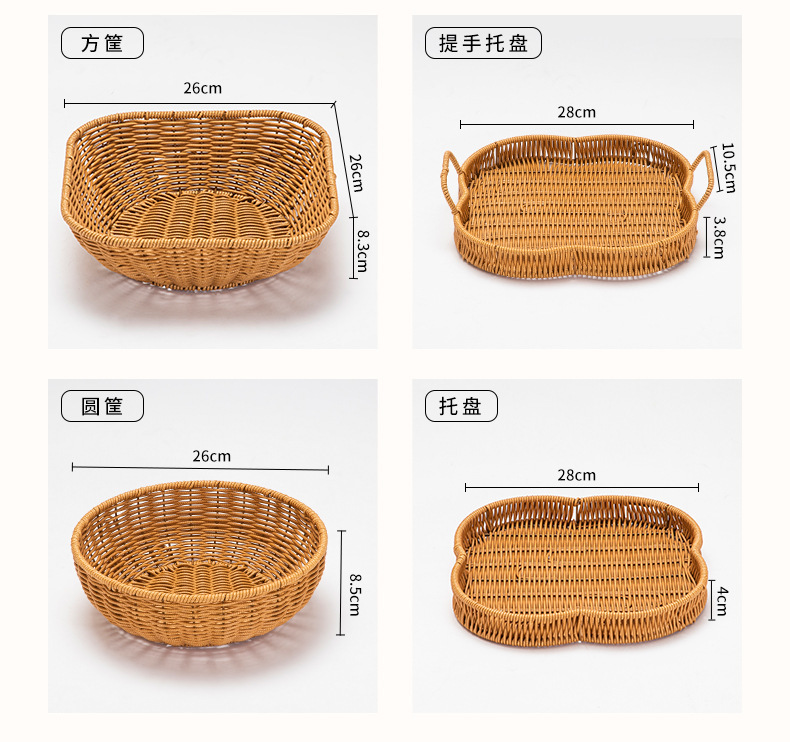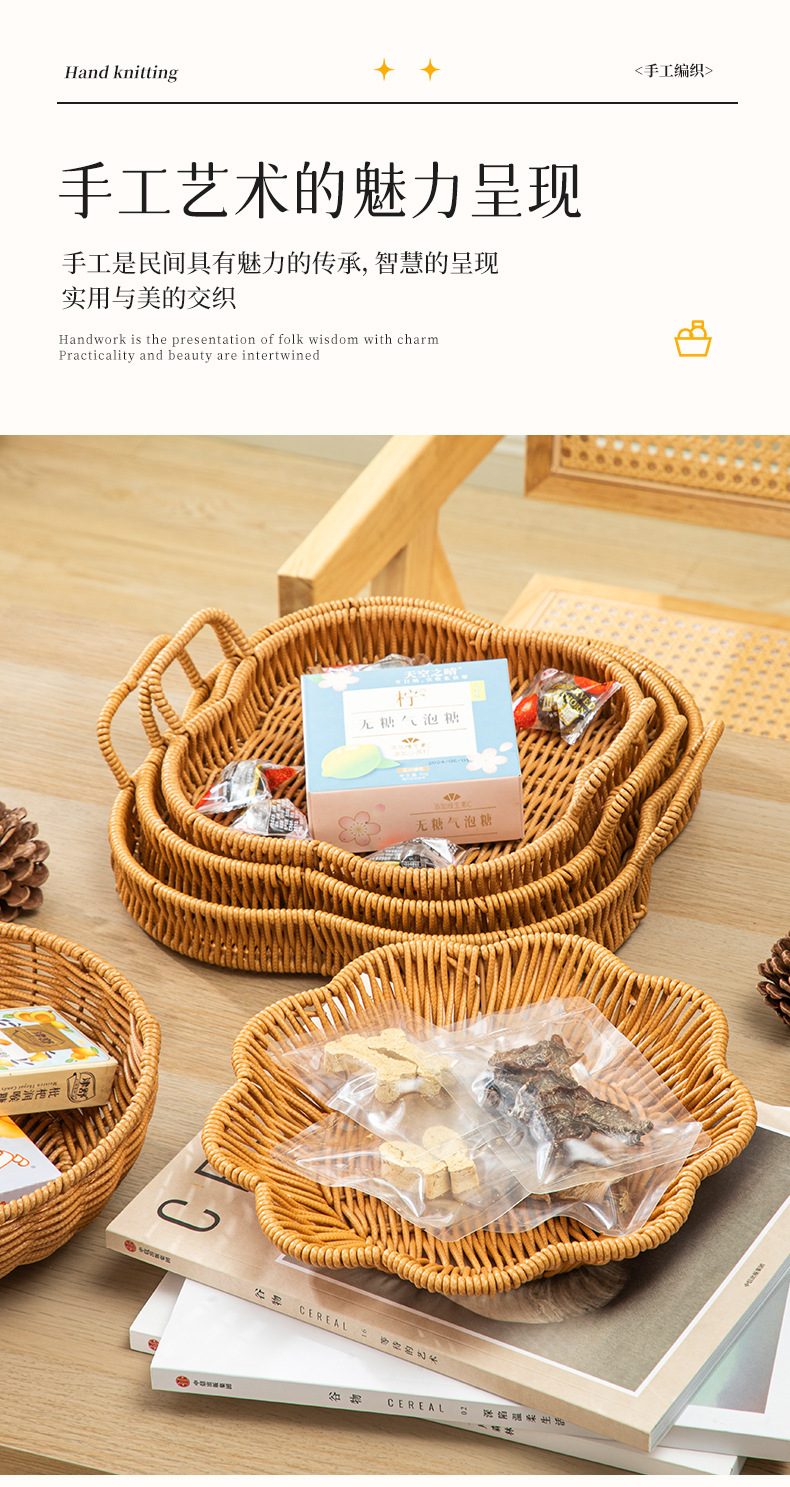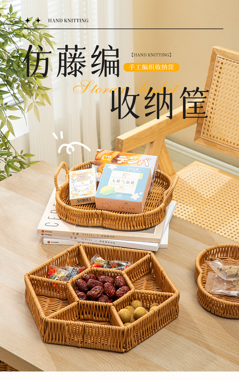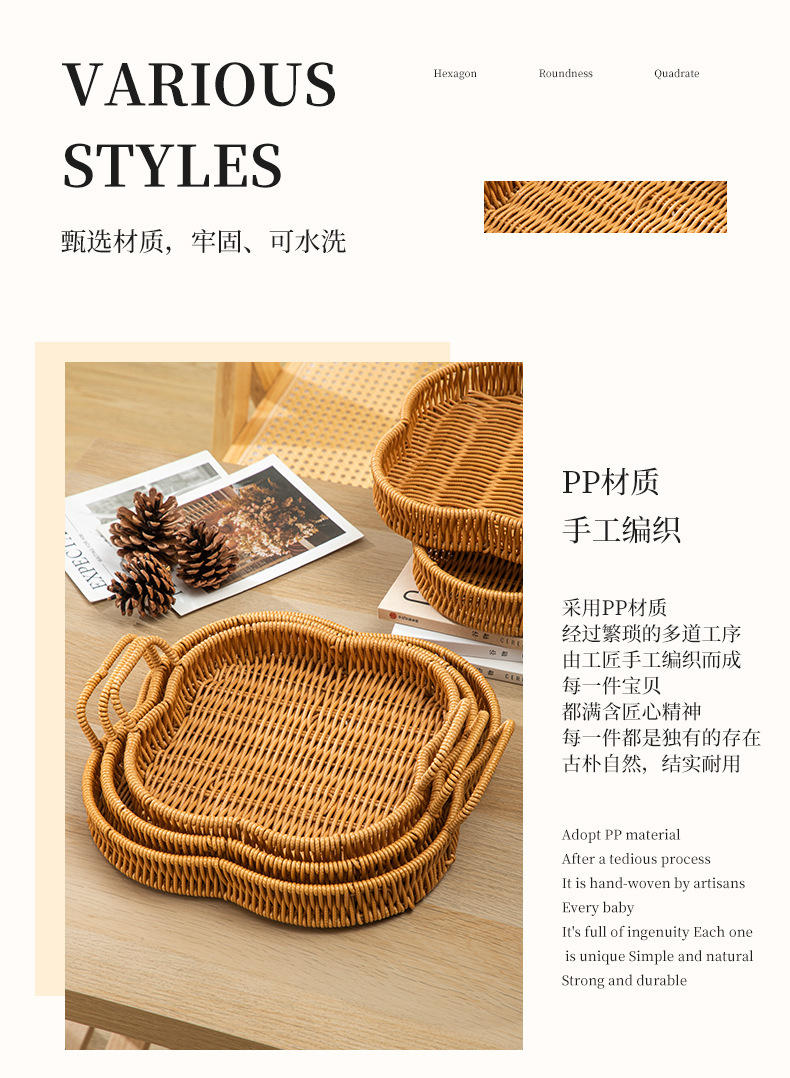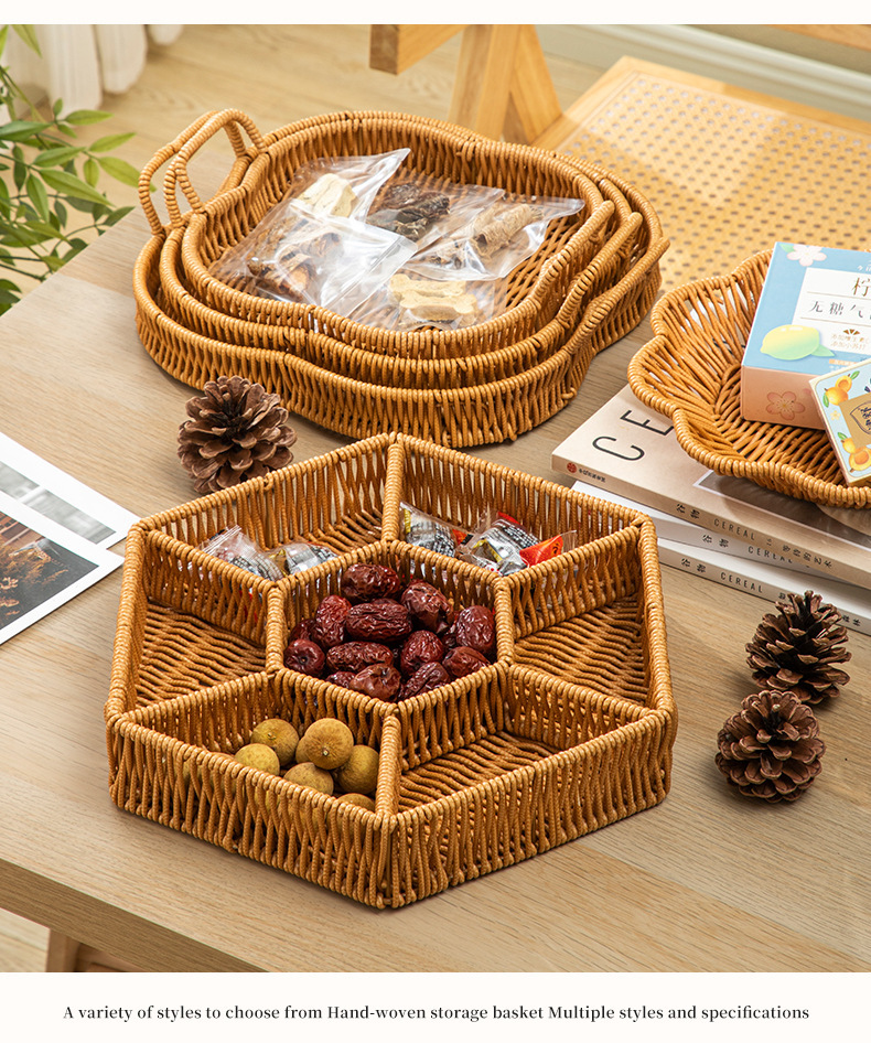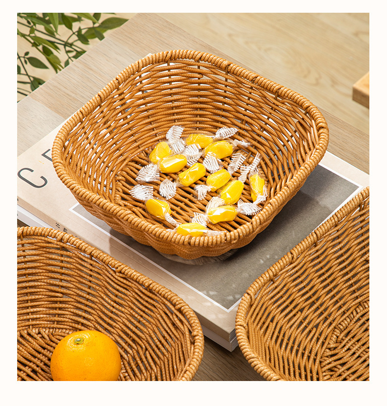 가정용 빈티지 등나무 과일 바구니 과일 접시 간식 저장 손으로 짠 플라스틱 과일 접시 빵 바구니 저장 바구니