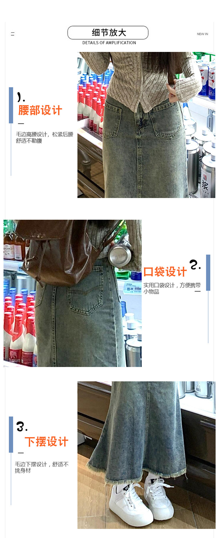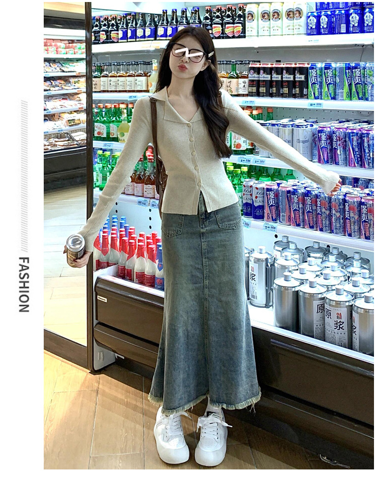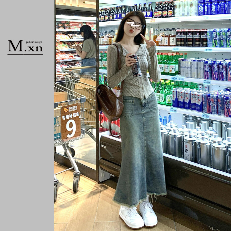 빈티지 데님 피쉬 스커트 여성 2025 봄 높은 허리 슬리밍 엉덩이 커버 중간 길이 A 라인 힙합스토어 가기