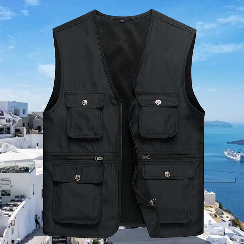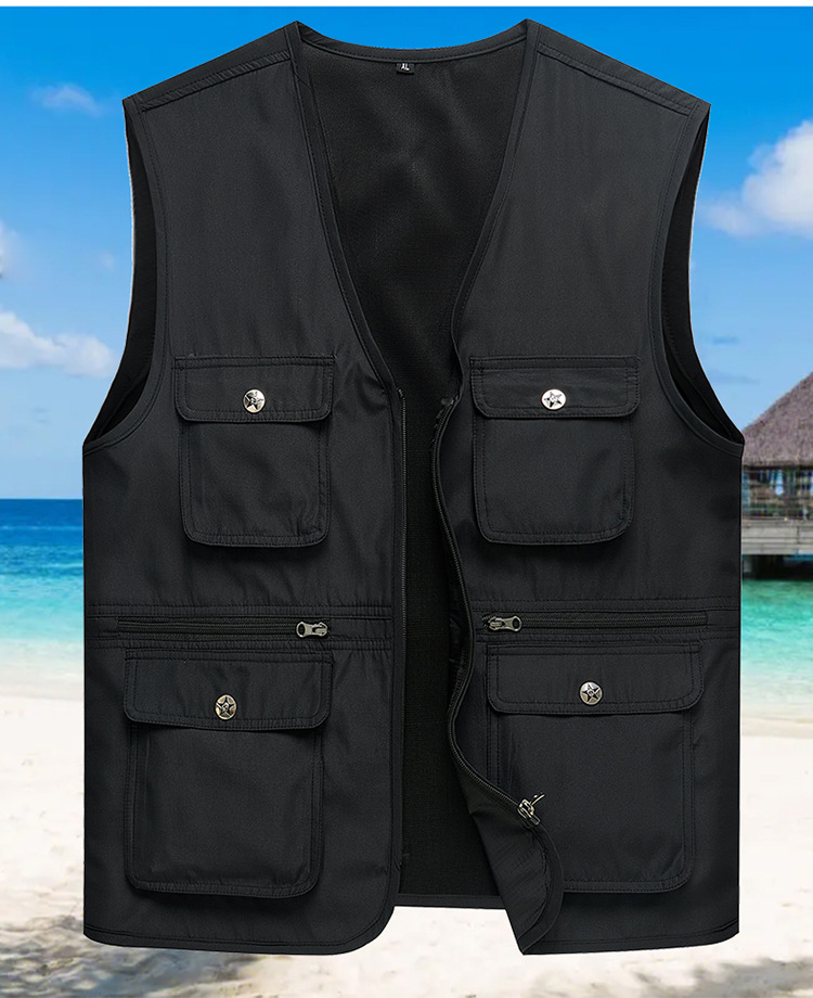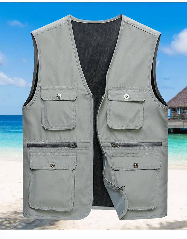 중년 및 노인을위한 새로운 여름 멀티 포켓 남성 조끼 빠른 건조 얇은 느슨한 허리 코트 낚시 사진 툴링 남성 조끼스토어 가기