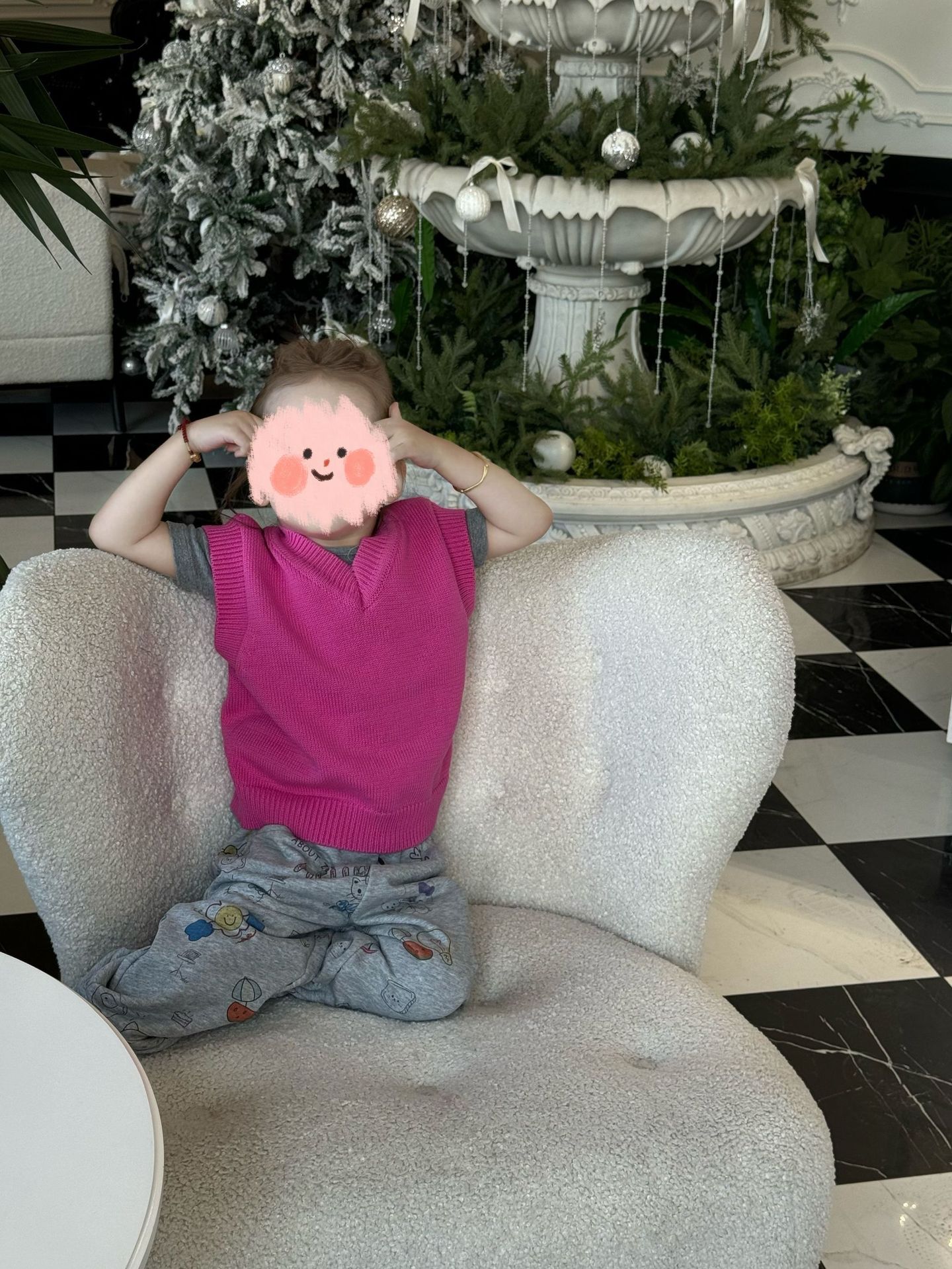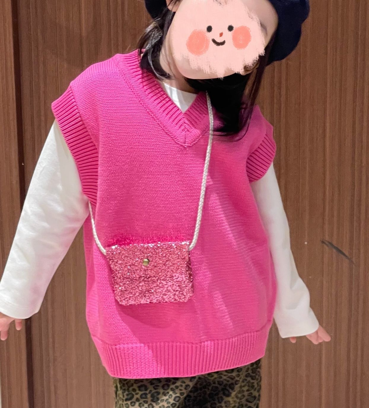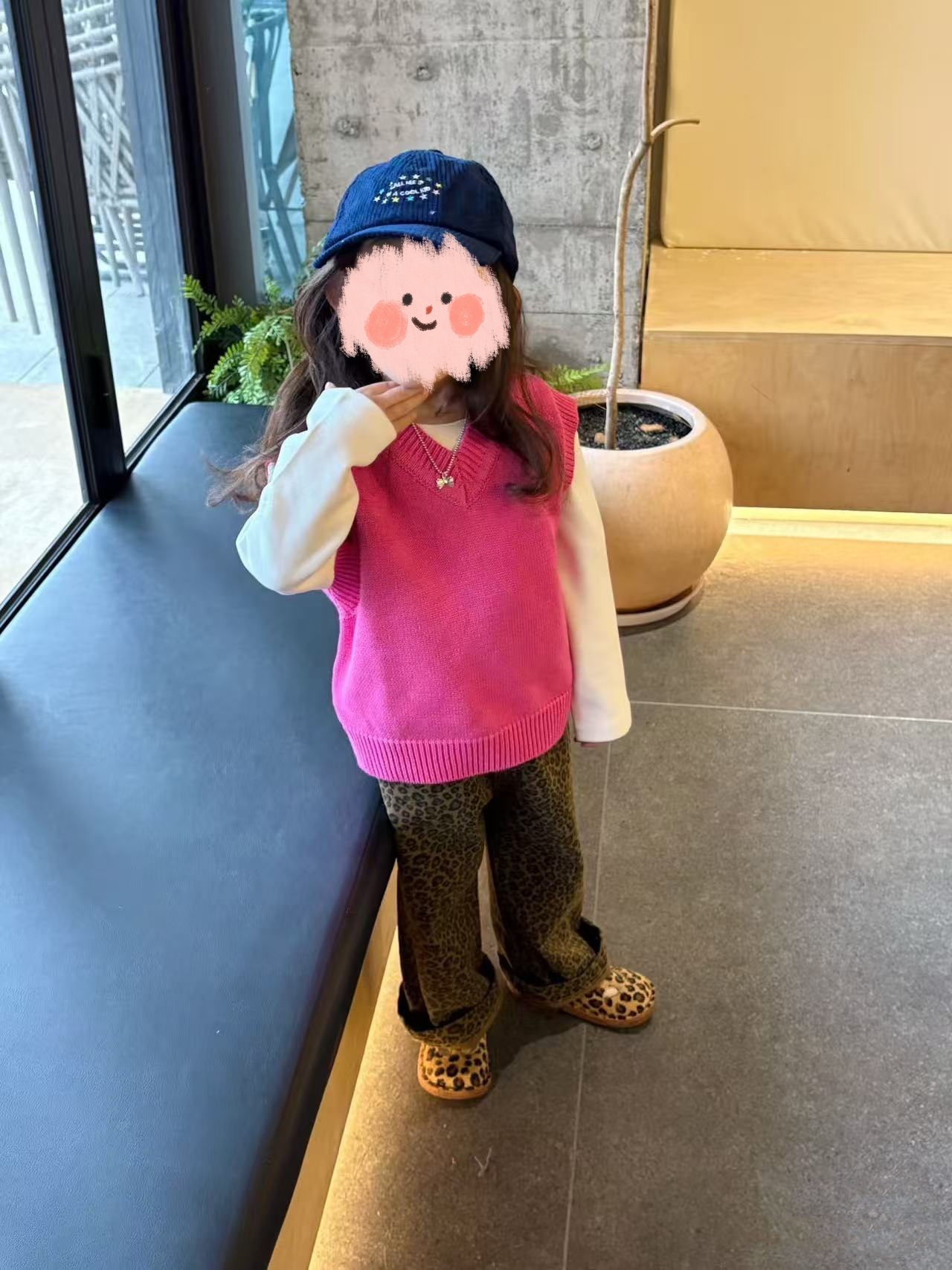 【클리어런스 특가! 반품 불가】봄철 아동용 외출용 풀오버 조끼 여아용 스웨터 중소형 브이넥 니트