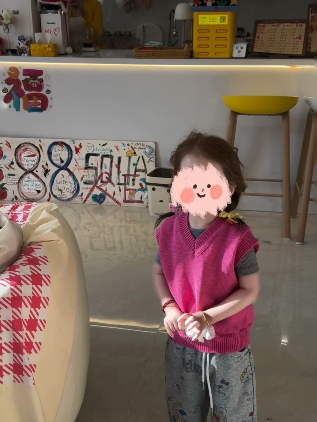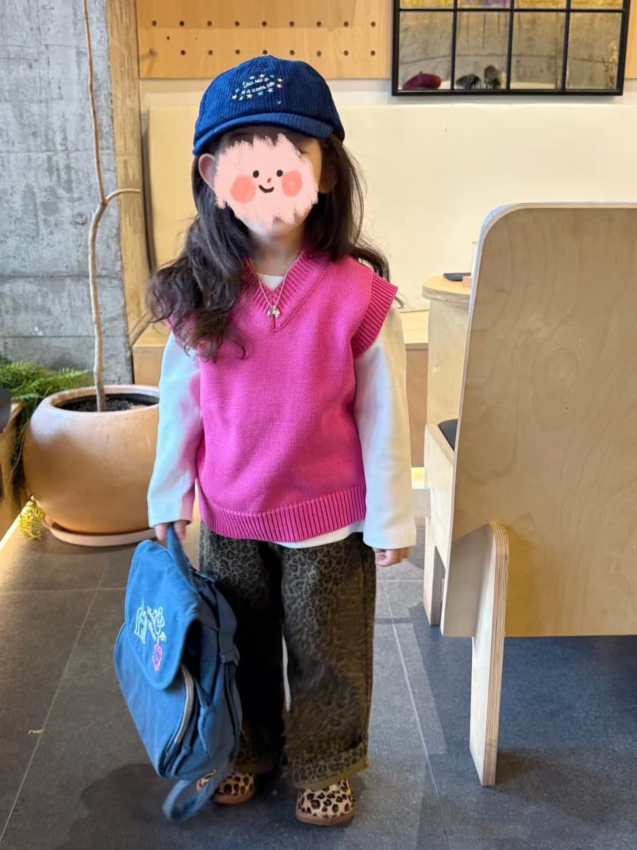 【클리어런스 특가! 반품 불가】봄철 아동용 외출용 풀오버 조끼 여아용 스웨터 중소형 브이넥 니트스토어 가기