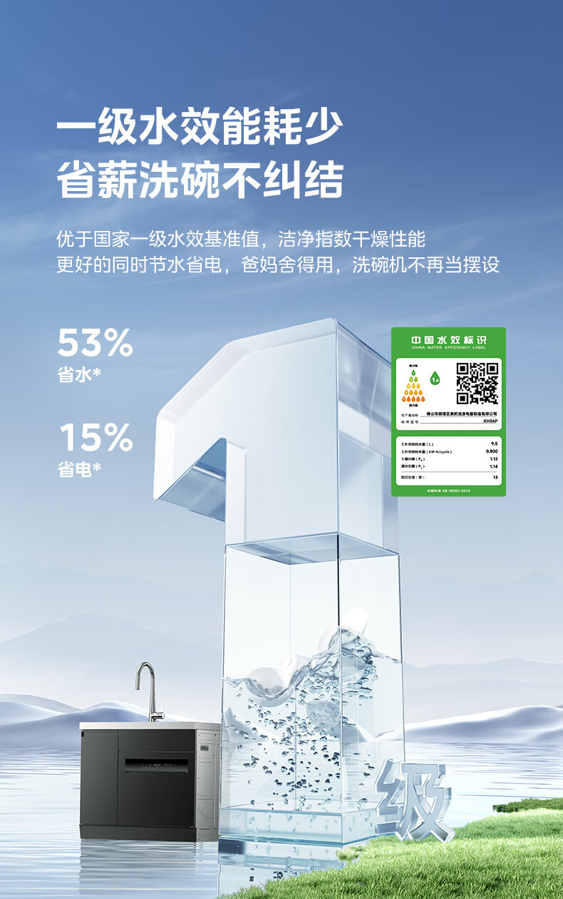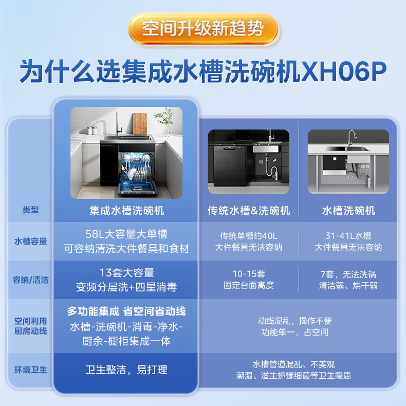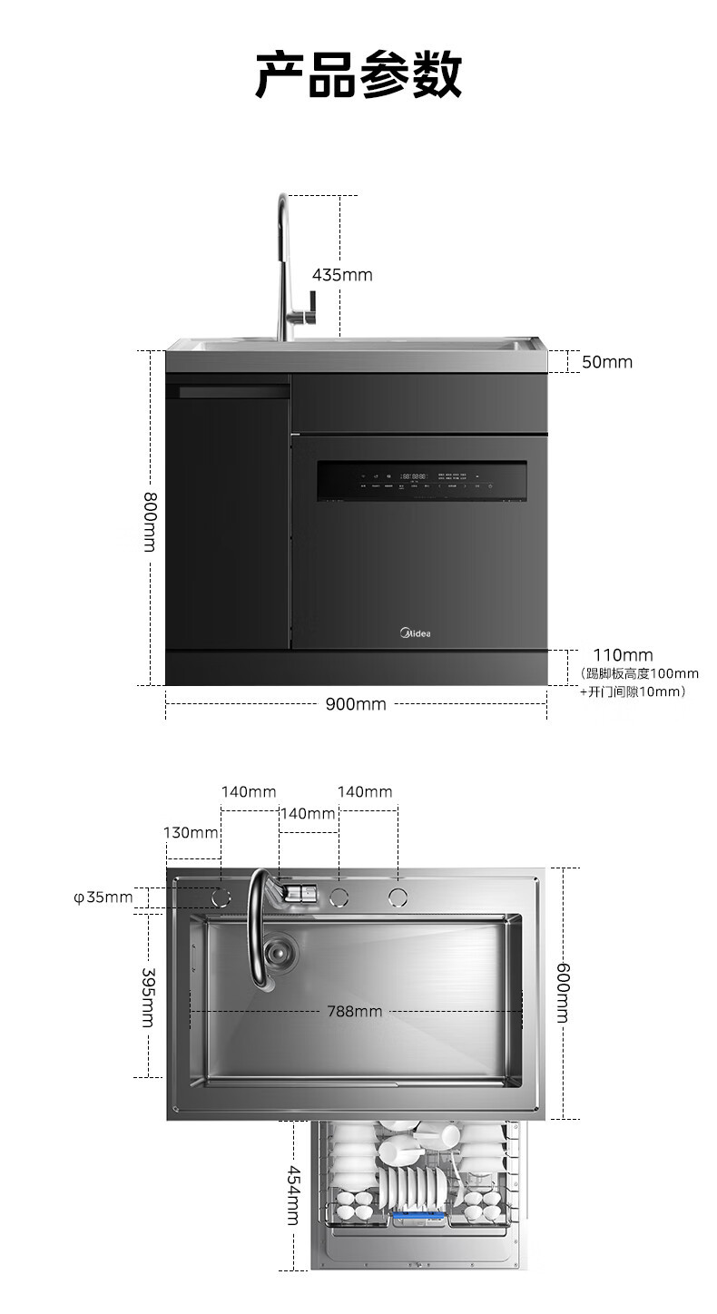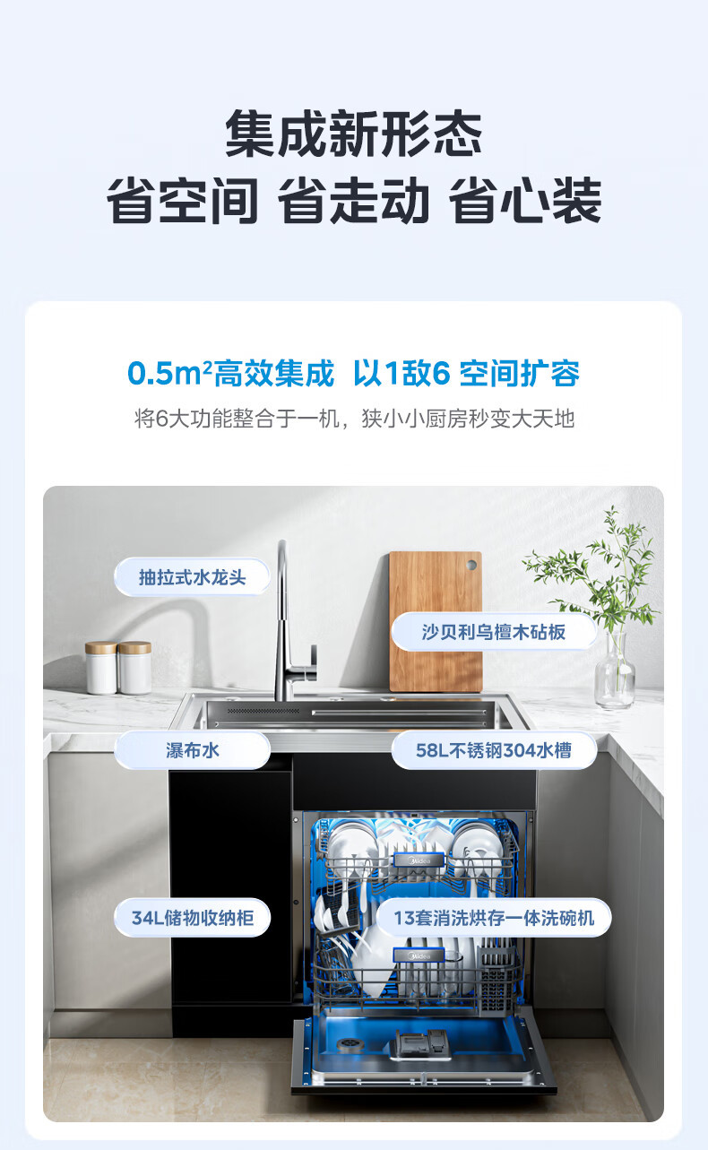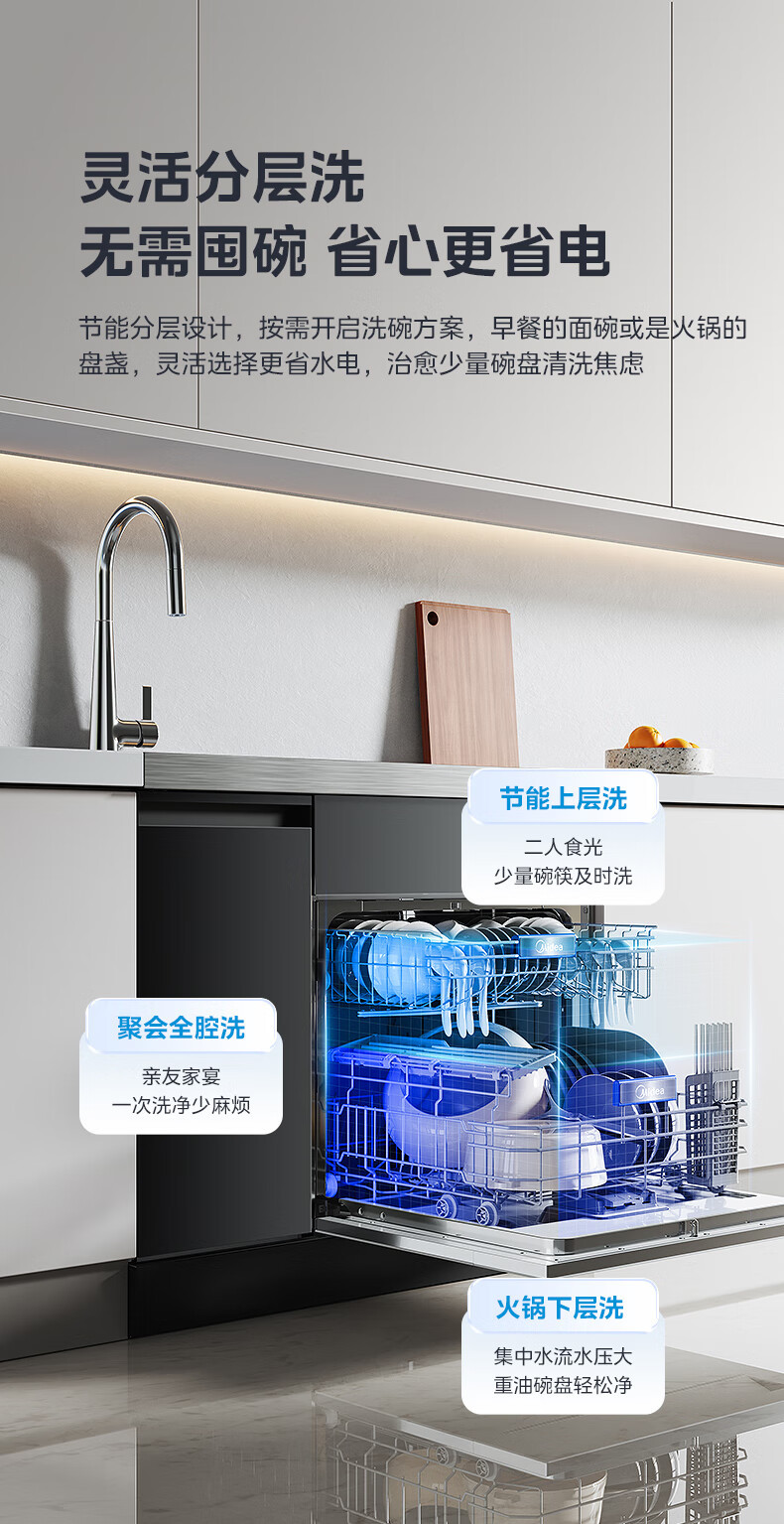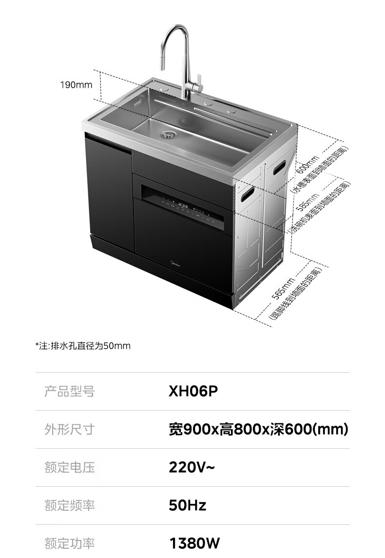 Midea [XH06P] 통합 싱크 식기 세척기 13 세트 용량 식기 세척기 대형 단일 싱크 식기 세척기