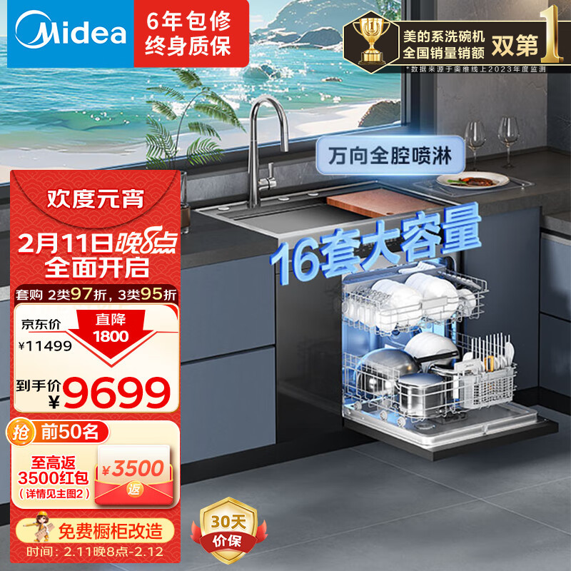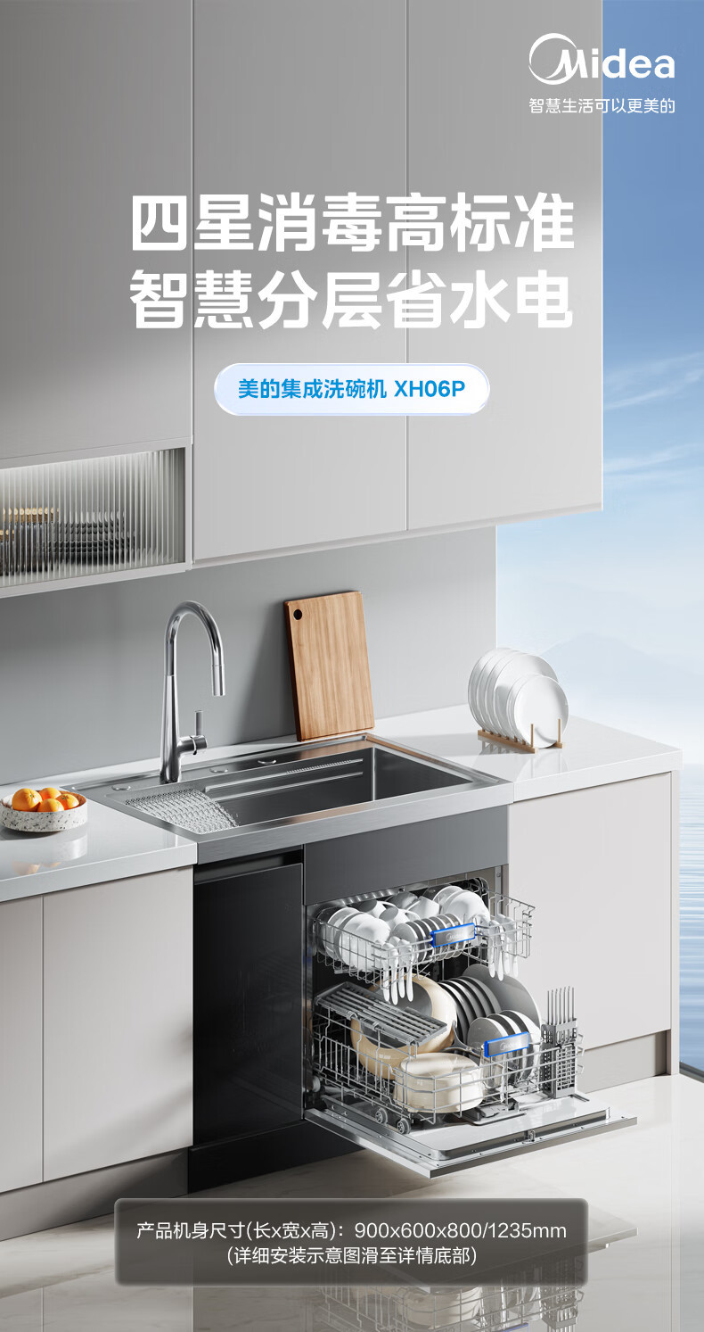 Midea [XH06P] 통합 싱크 식기 세척기 13 세트 용량 식기 세척기 대형 단일 싱크 식기 세척기스토어 가기