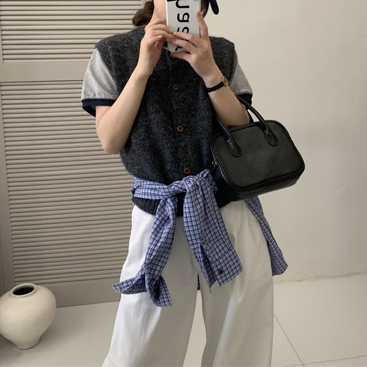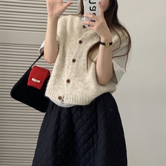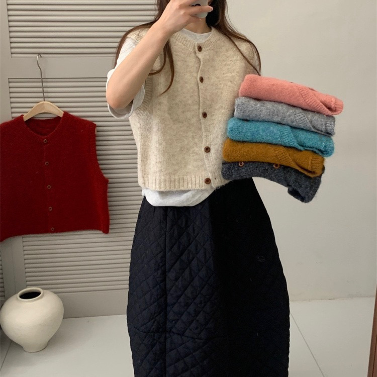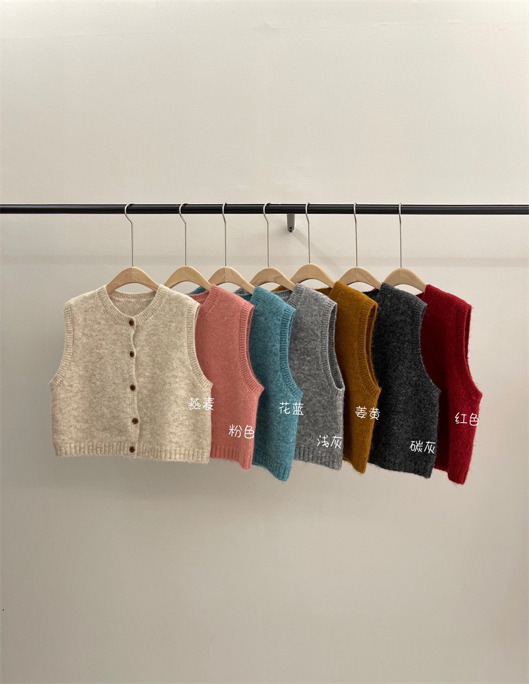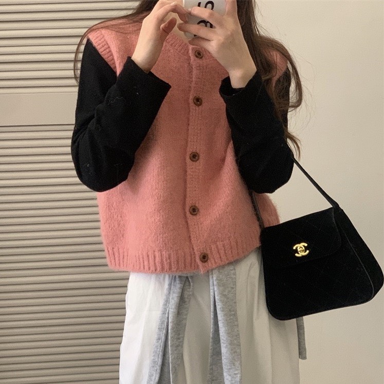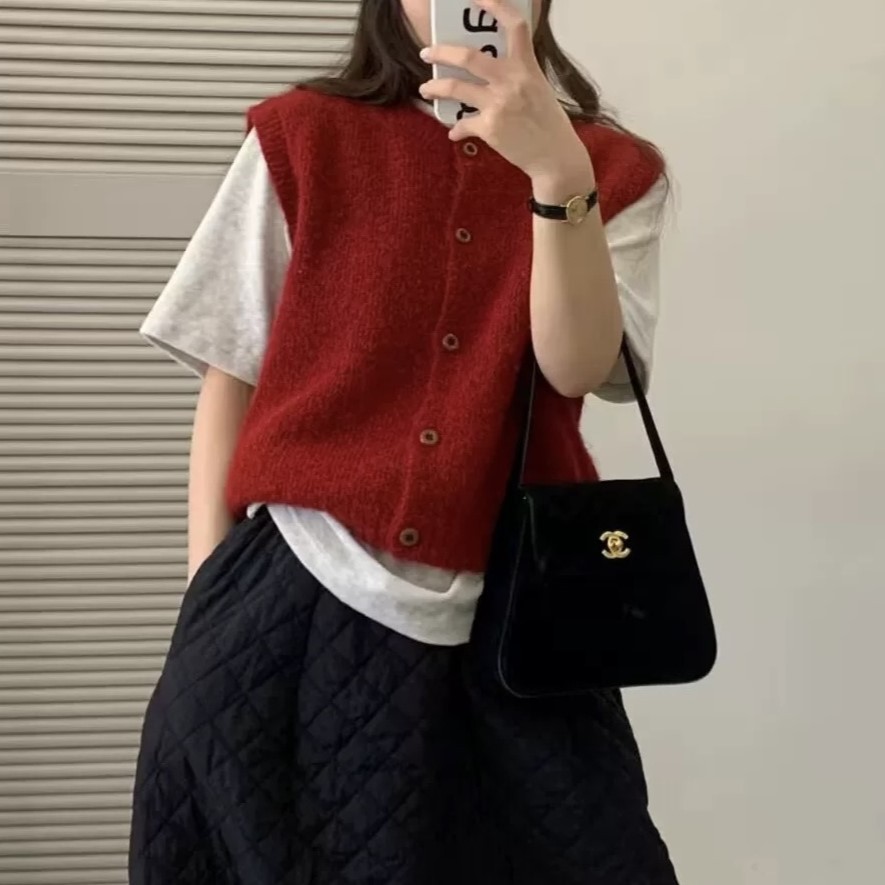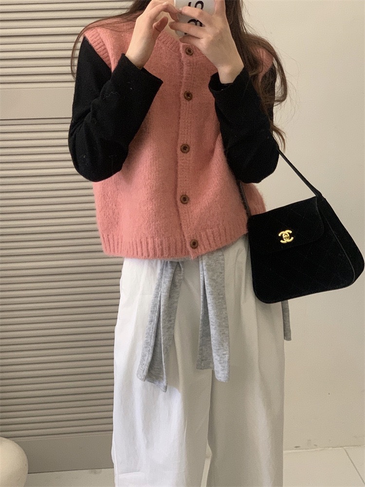 한국 고급 센스 싱글 브레스트 니트 조끼 여성 카디건 봄 · 가을 느슨하게 쌓인 웨이스트코트 스웨터 조끼 탑