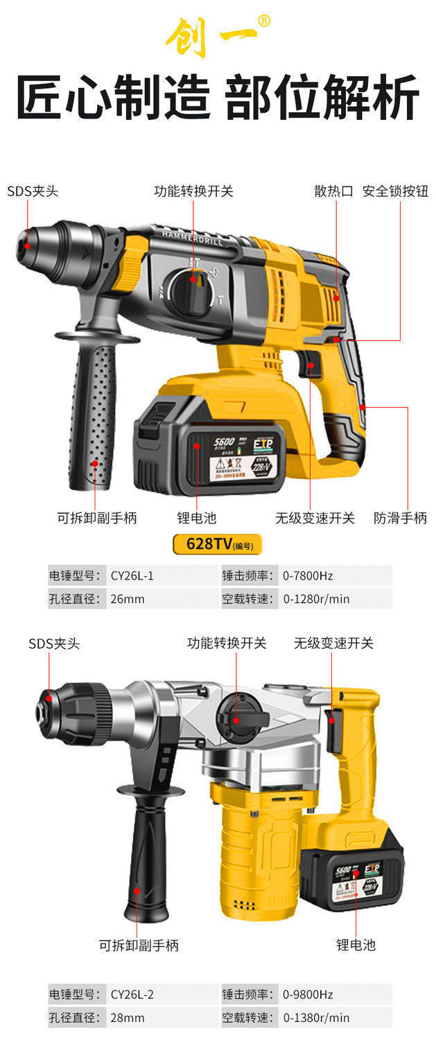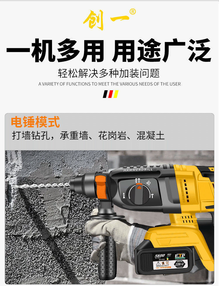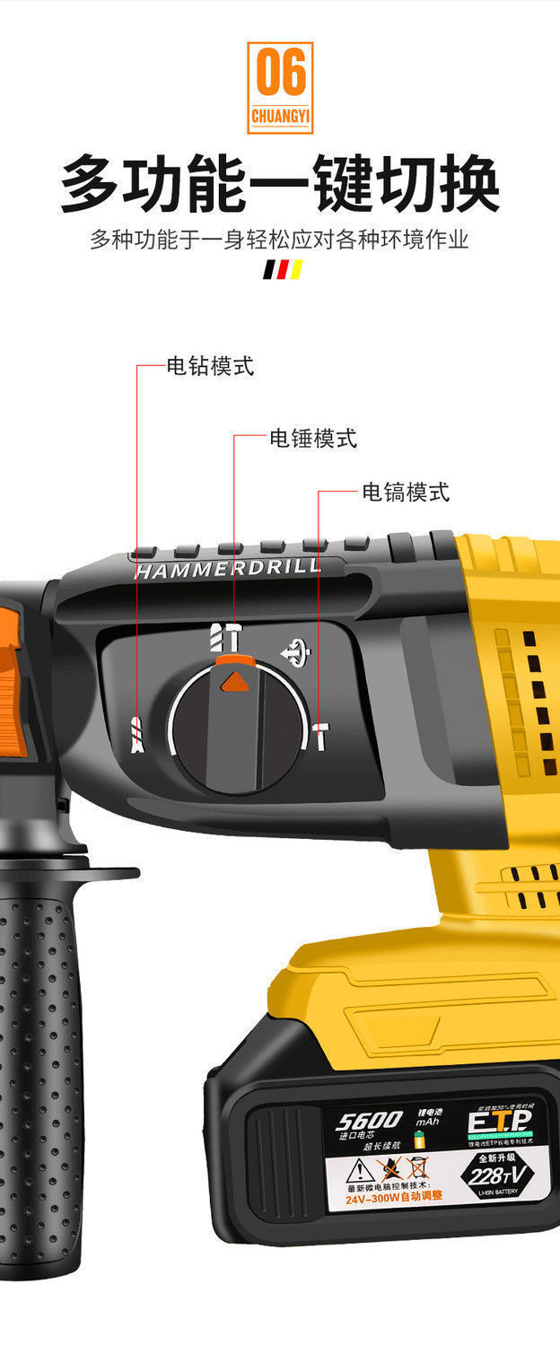 • [미국 품질/용비 로스팅] 10년 보증 전기 해머 + 앵글 그라인더 + 전기 드릴 [배터리 2개, 1회 충전 - 7
