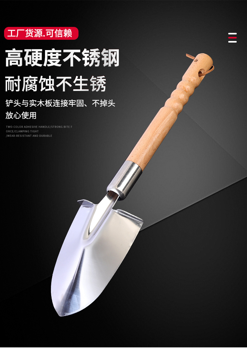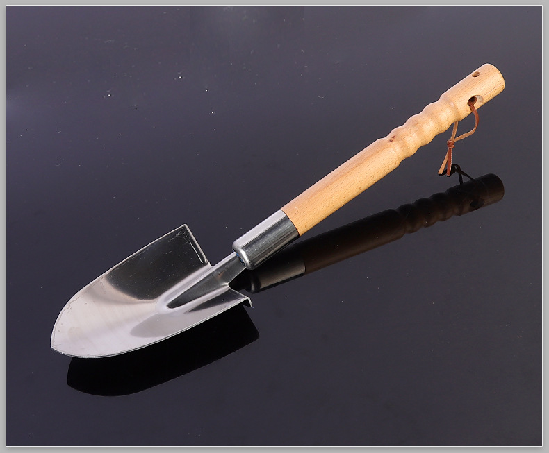 스테인레스 스틸 나무 손잡이 스페이드 작은 삽 원예 꽃 심기 도구 가정용 스테인레스 스틸 화분 정원 야채 나무 손잡이 스페이드