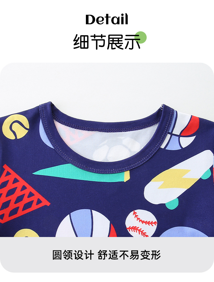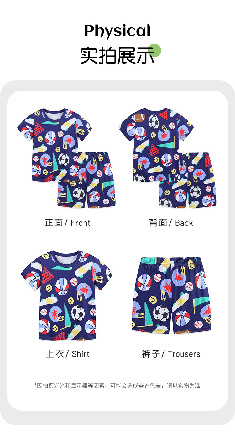 AostaBetty 여름 새로운 어린이 홈 의류 투피스 세트 유럽과 미국 스타일의 축구 인쇄 소년의 반팔 세트