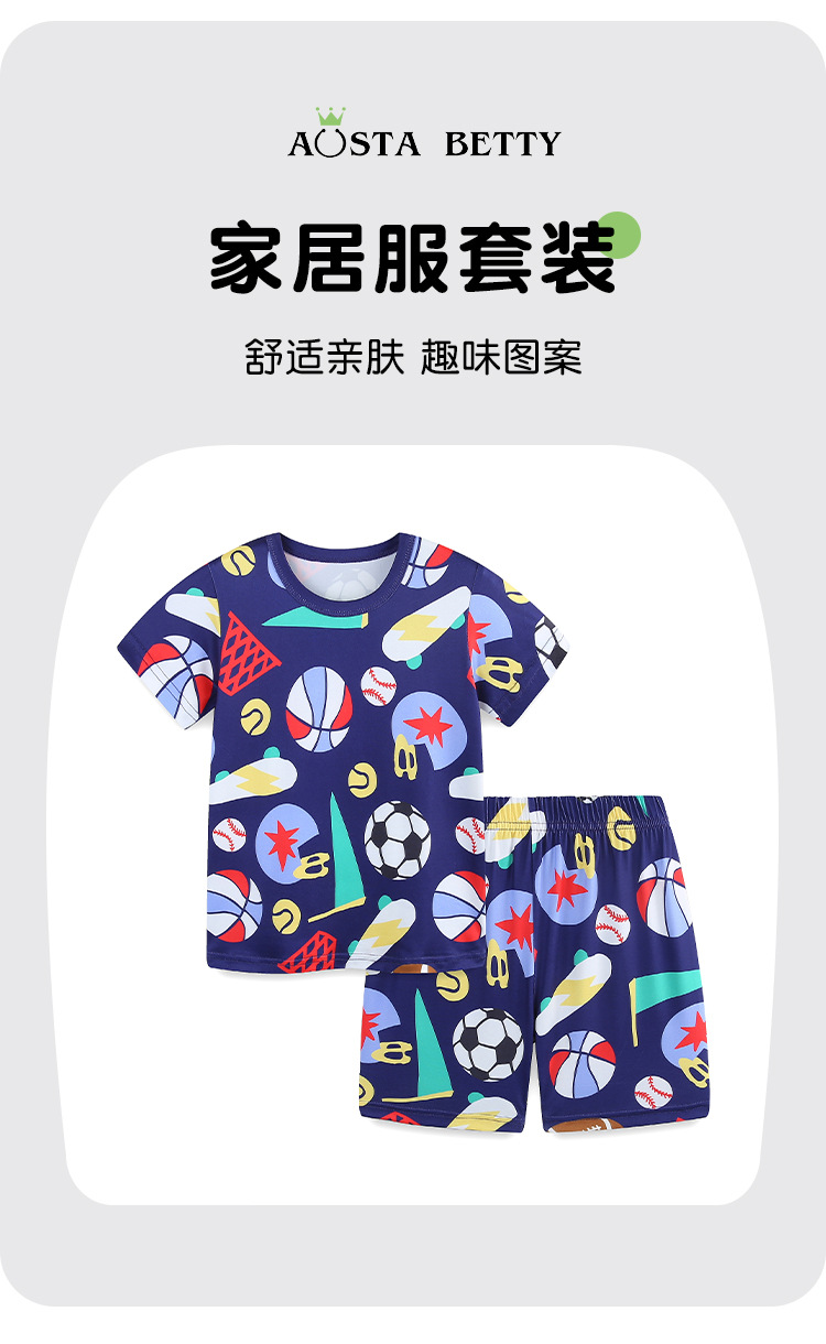 AostaBetty 여름 새로운 어린이 홈 의류 투피스 세트 유럽과 미국 스타일의 축구 인쇄 소년의 반팔 세트스토어 가기