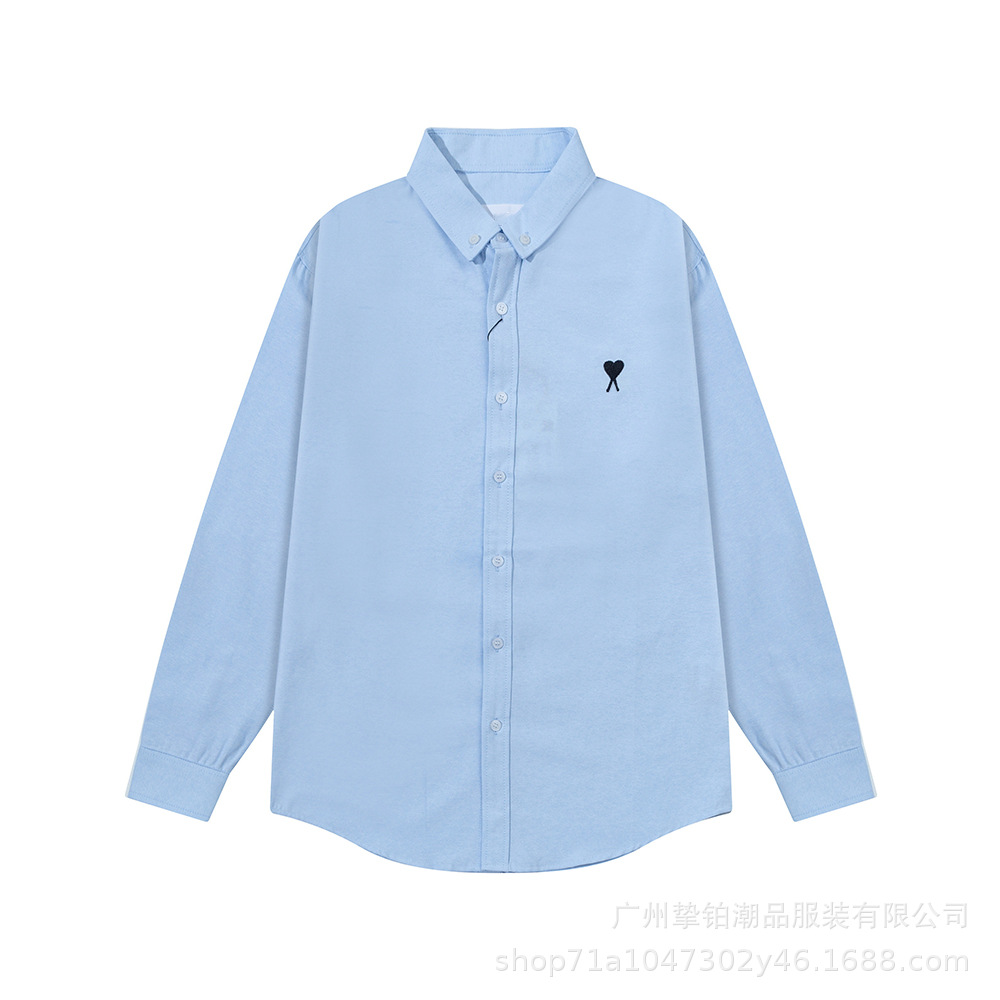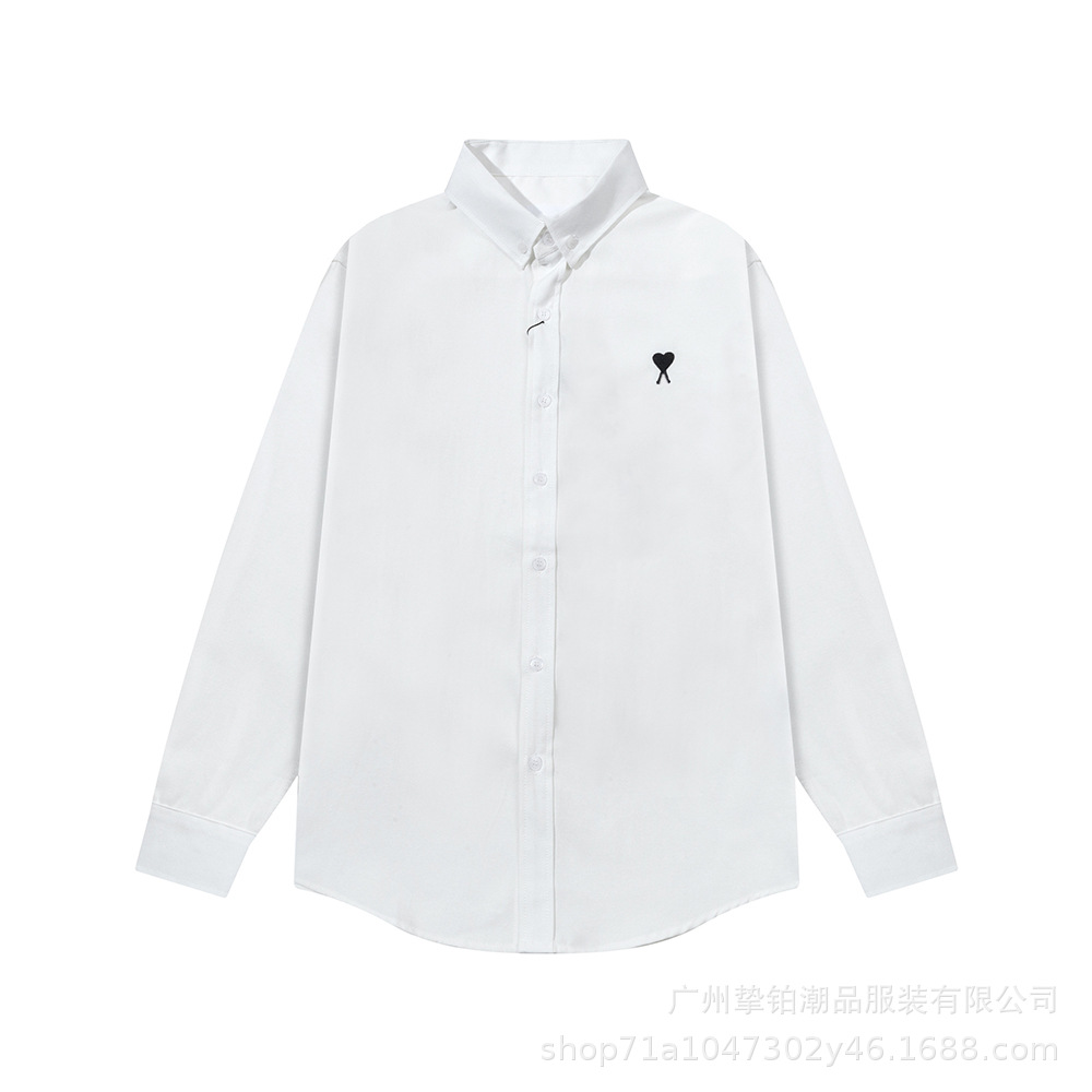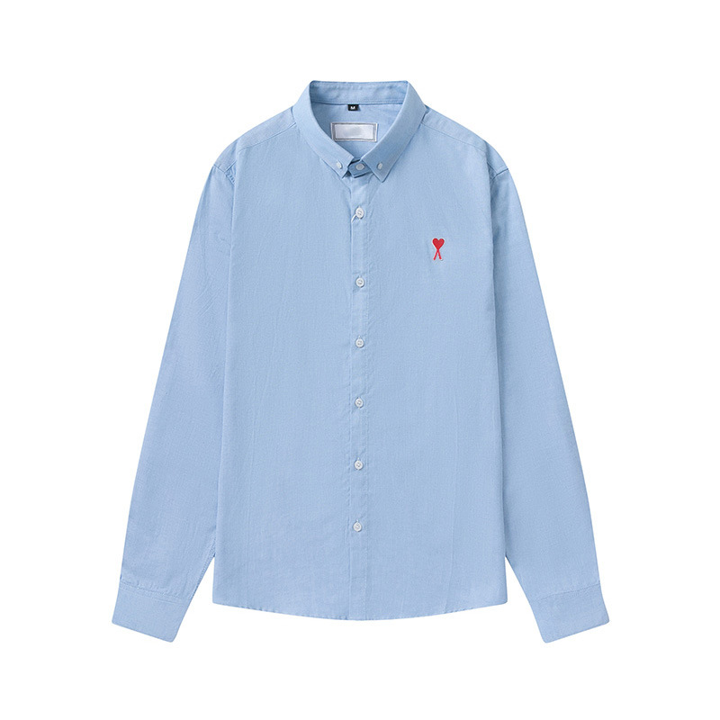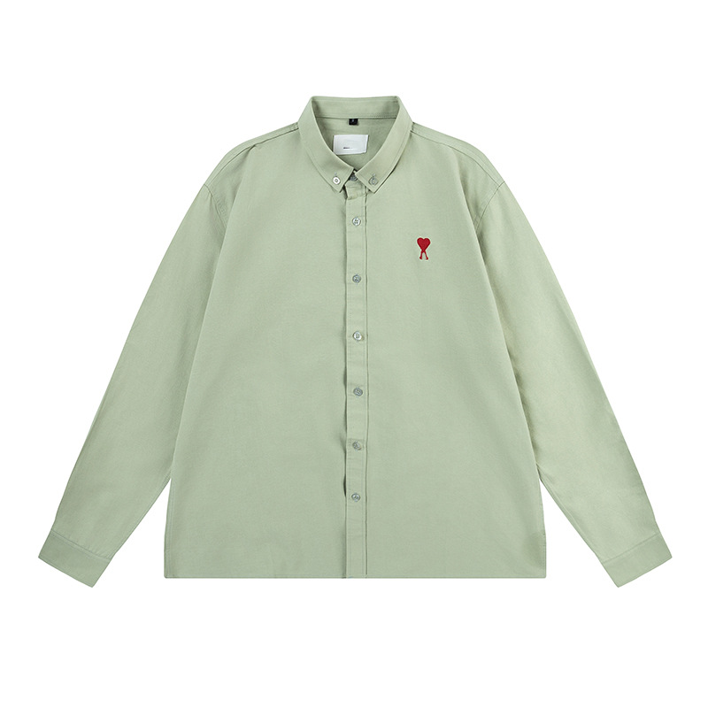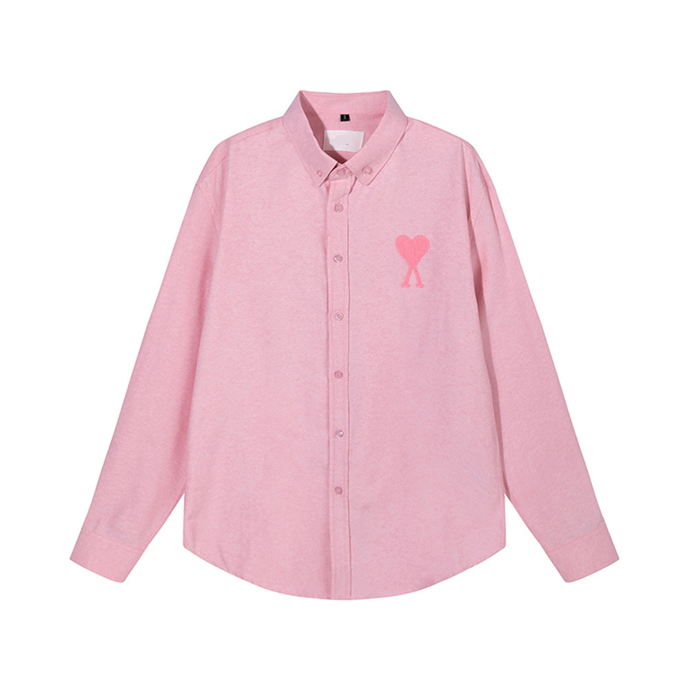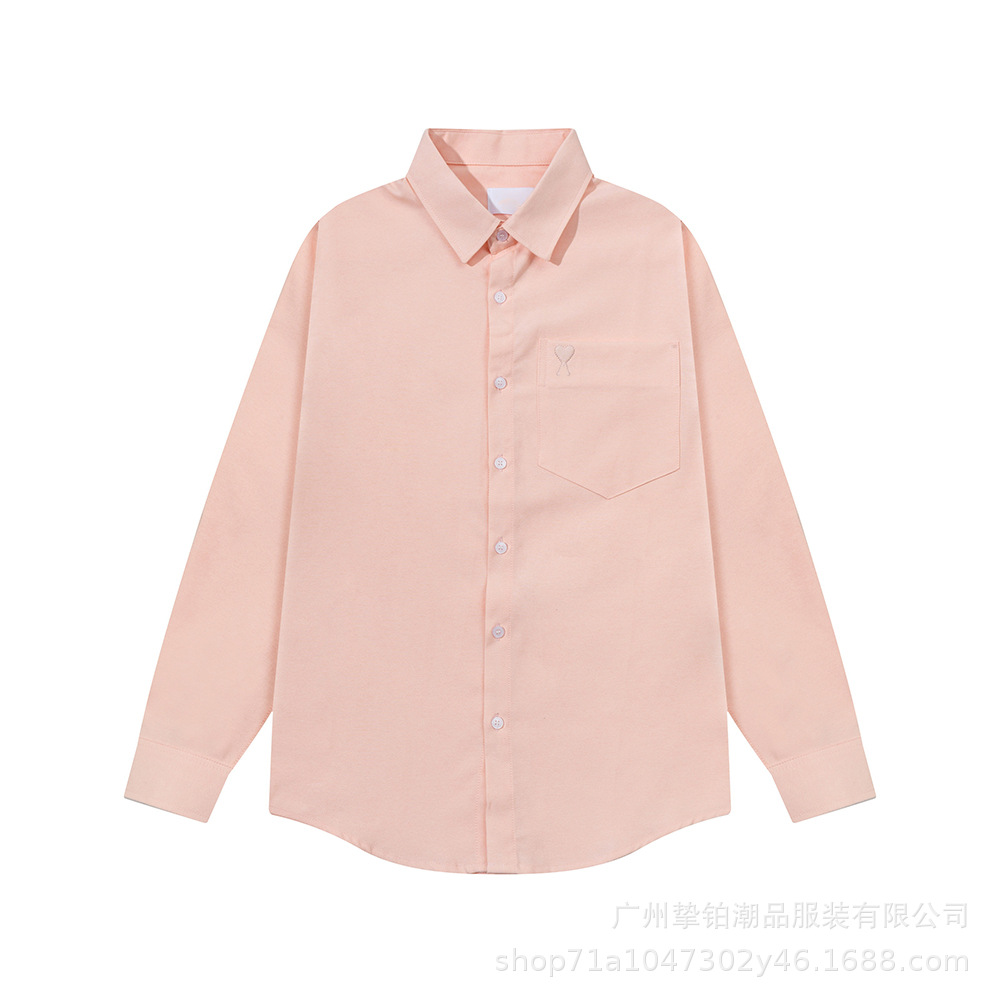 AMI CLAMS 수 놓은 작은 사랑 코튼 셔츠 옷깃 캐주얼 긴 소매 격자 무늬 컬러 셔츠 남성과 여성