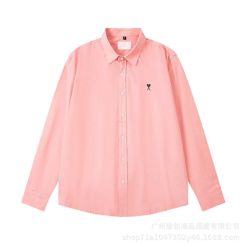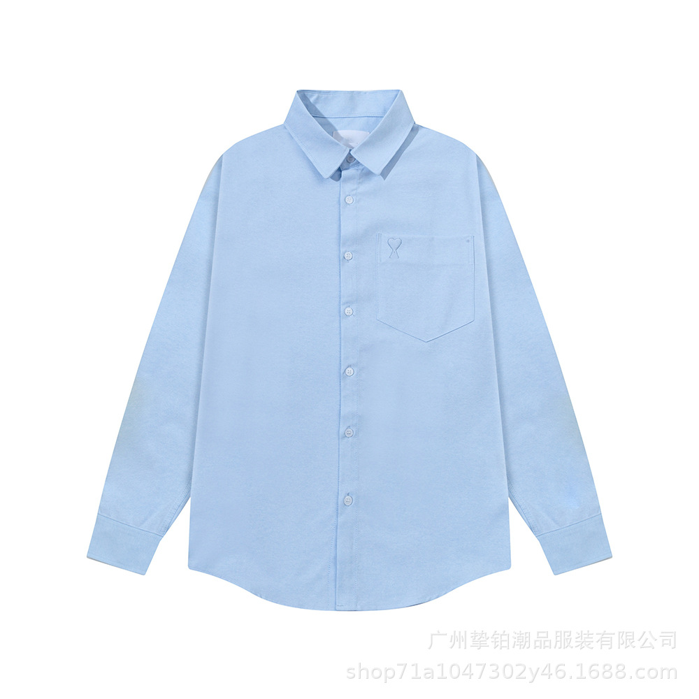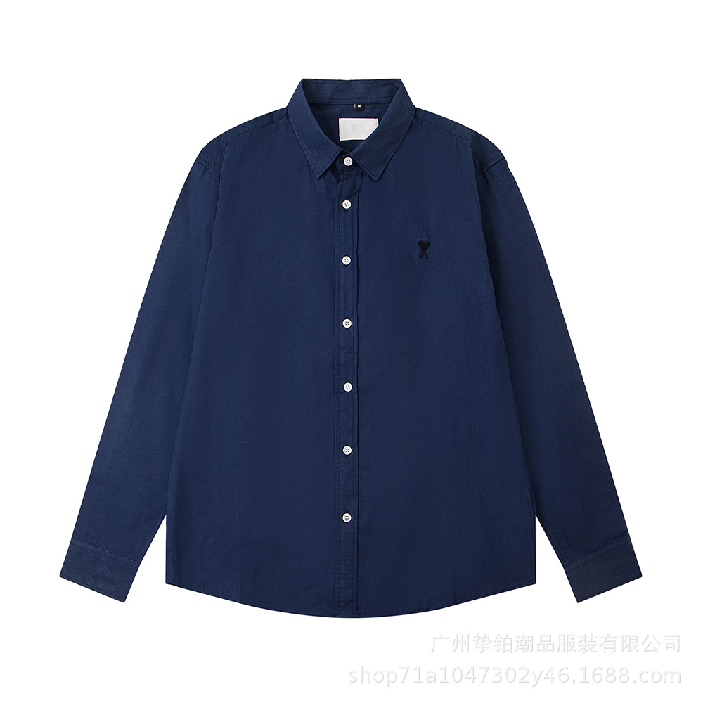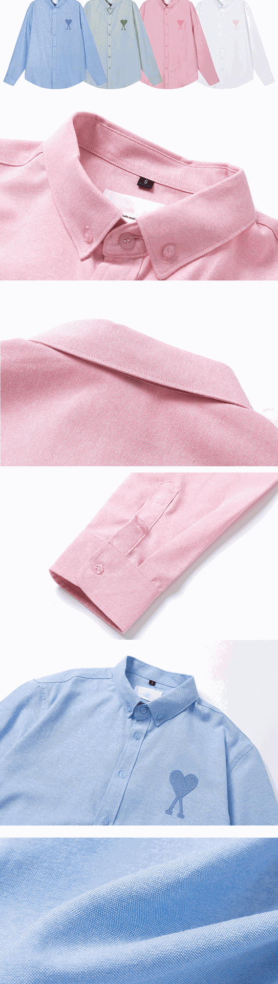 AMI CLAMS 수 놓은 작은 사랑 코튼 셔츠 옷깃 캐주얼 긴 소매 격자 무늬 컬러 셔츠 남성과 여성