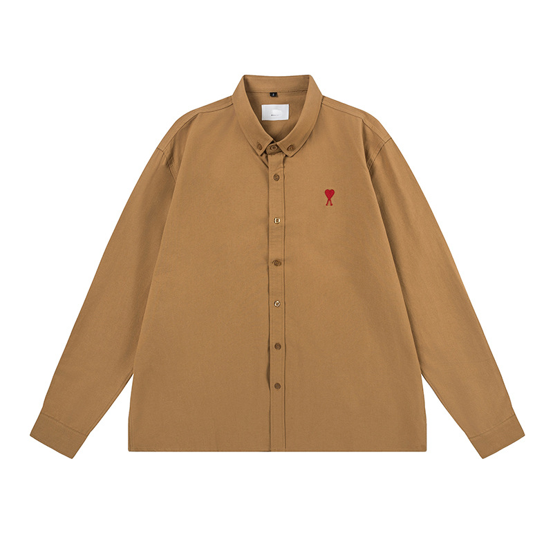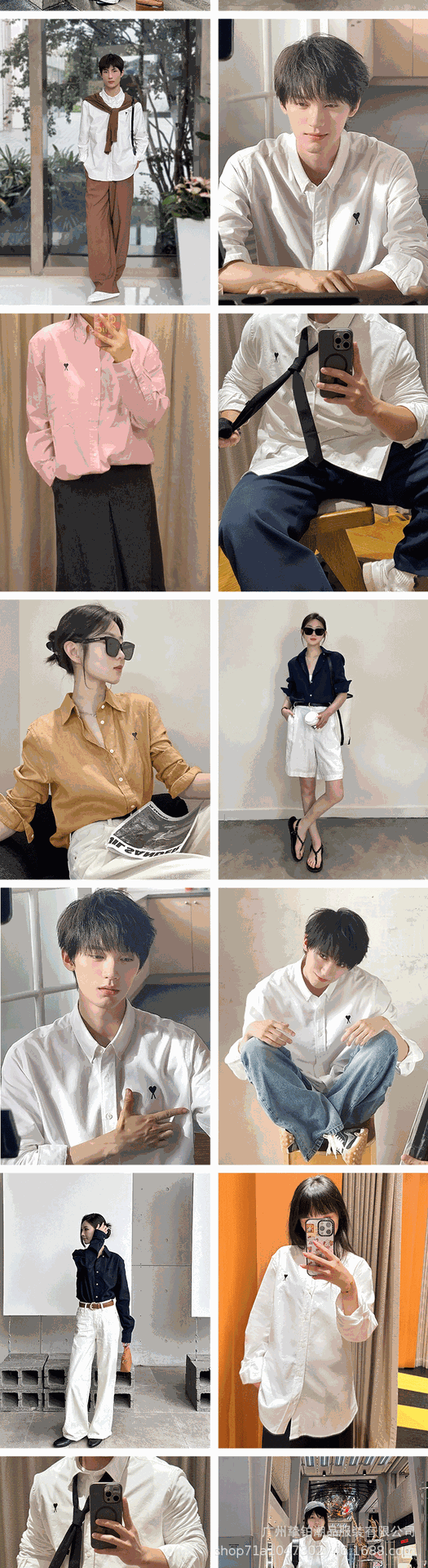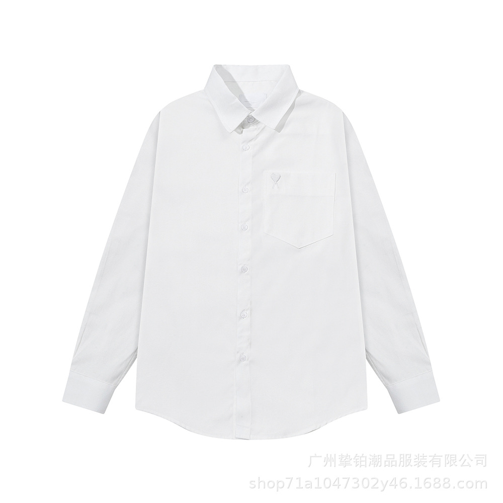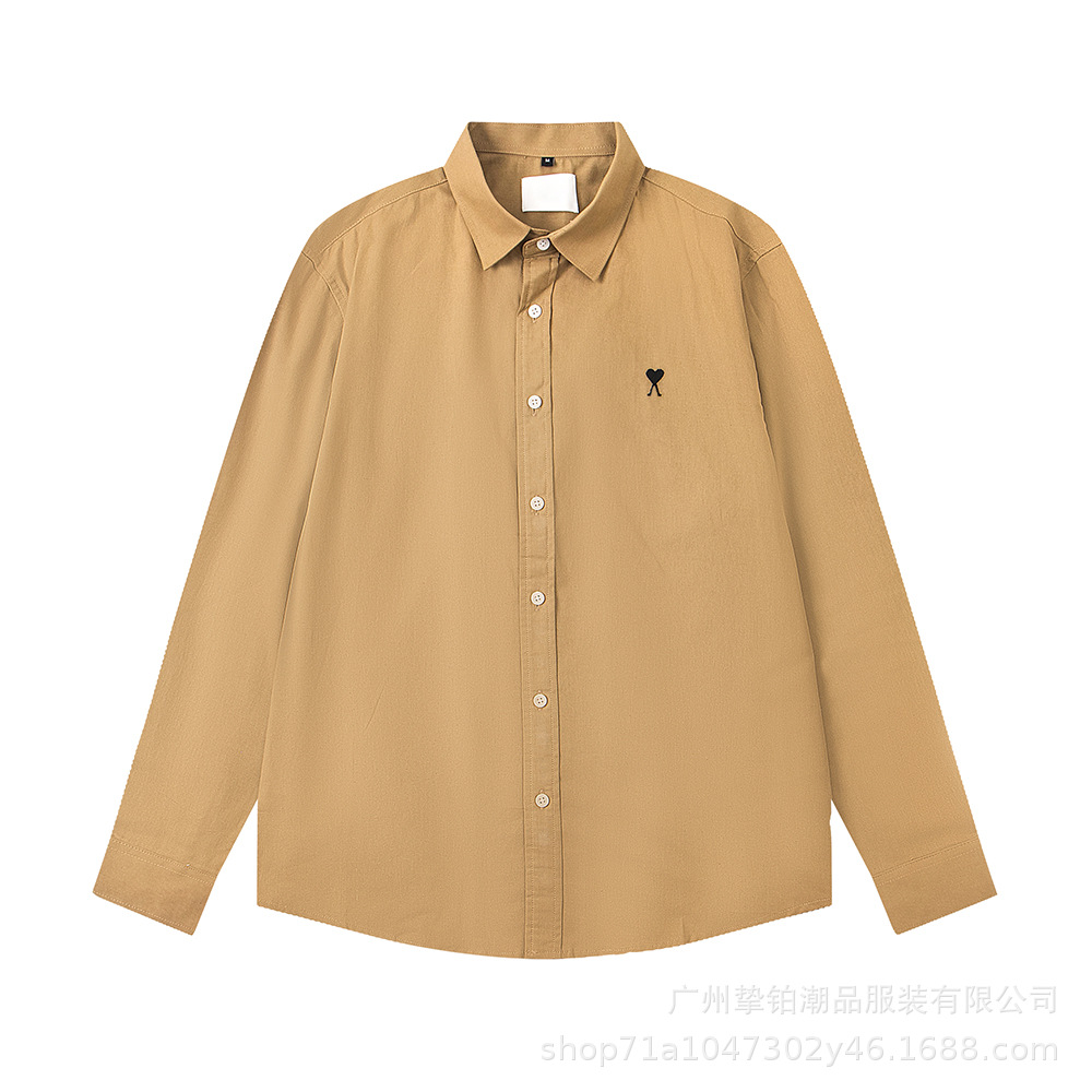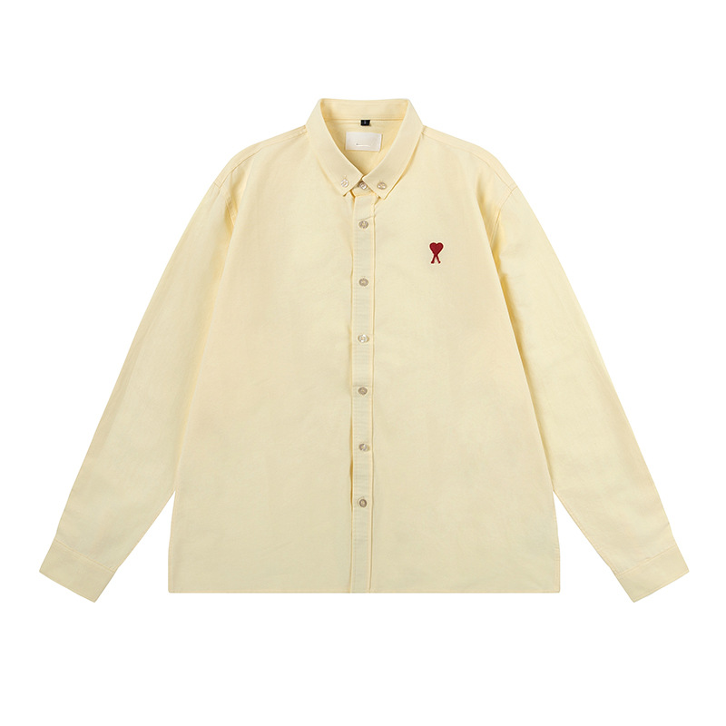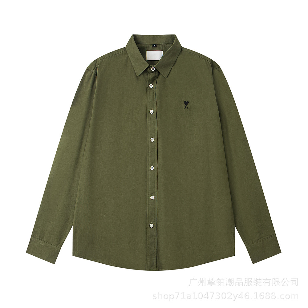AMI CLAMS 수 놓은 작은 사랑 코튼 셔츠 옷깃 캐주얼 긴 소매 격자 무늬 컬러 셔츠 남성과 여성