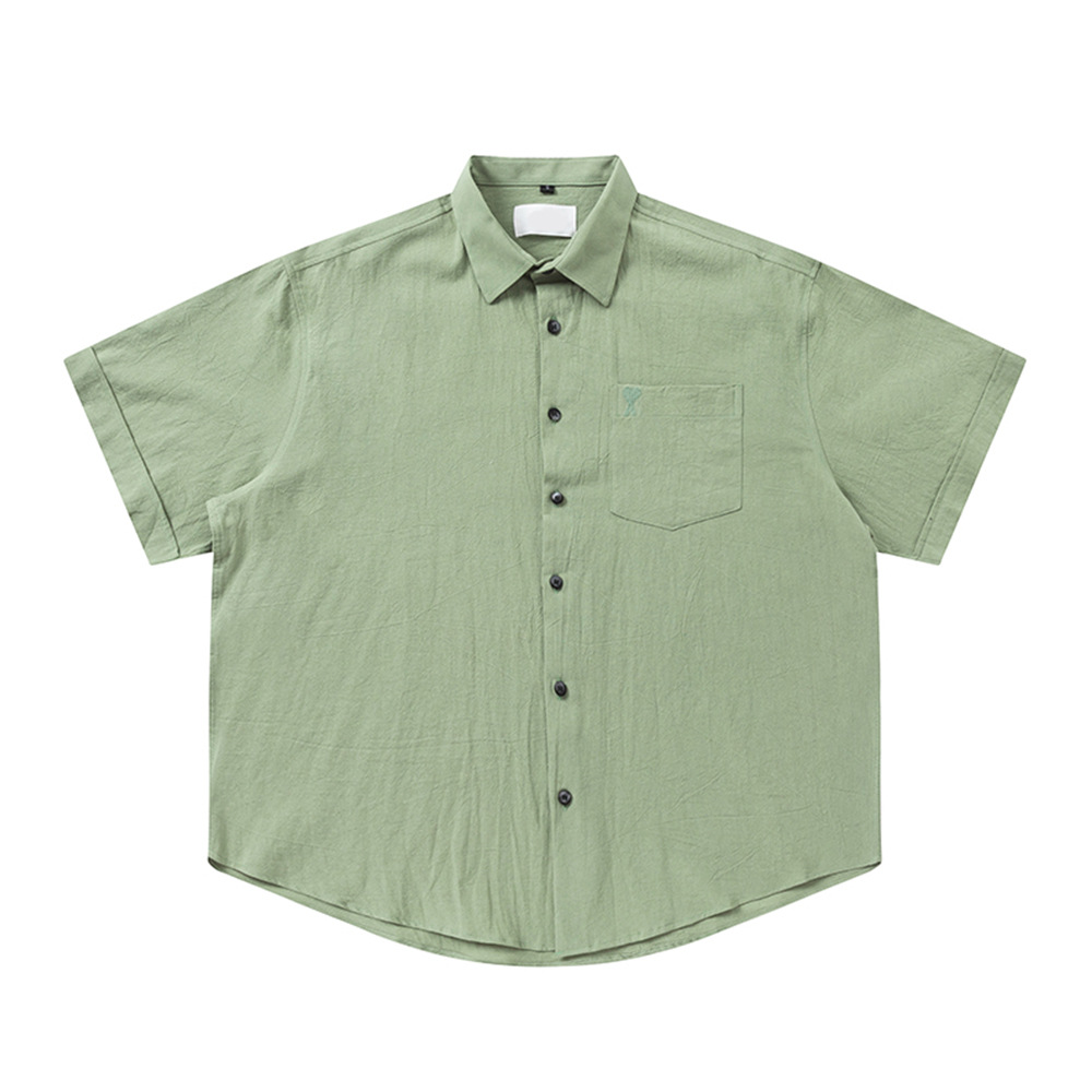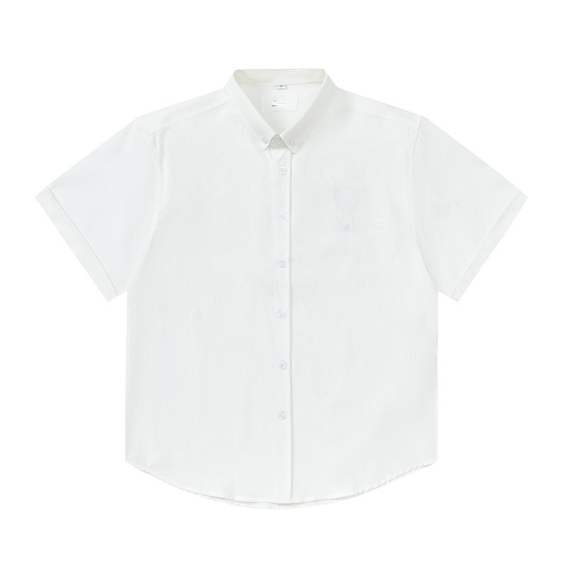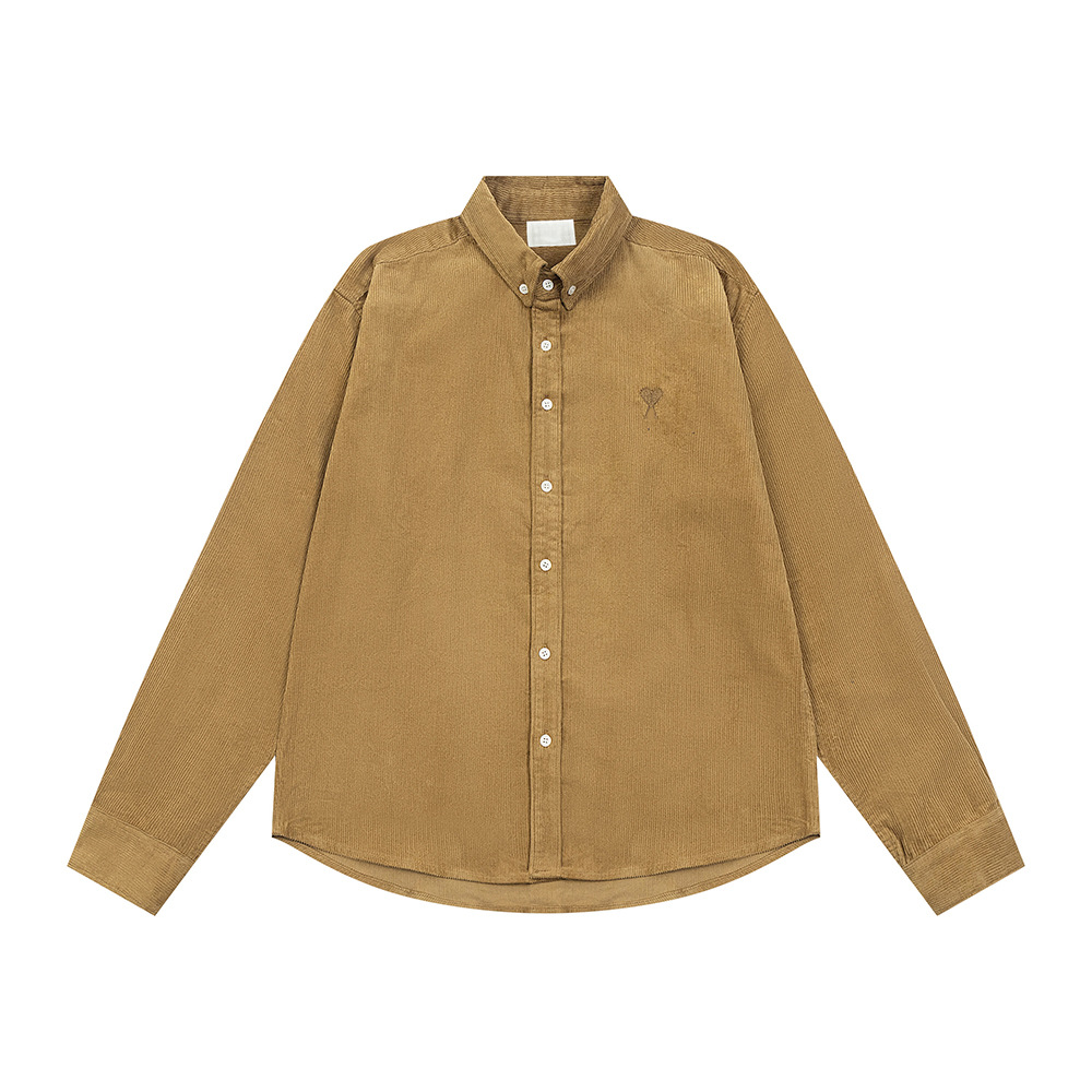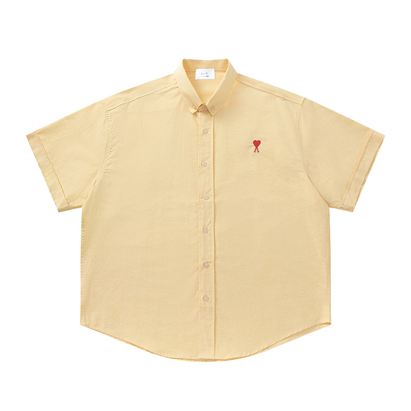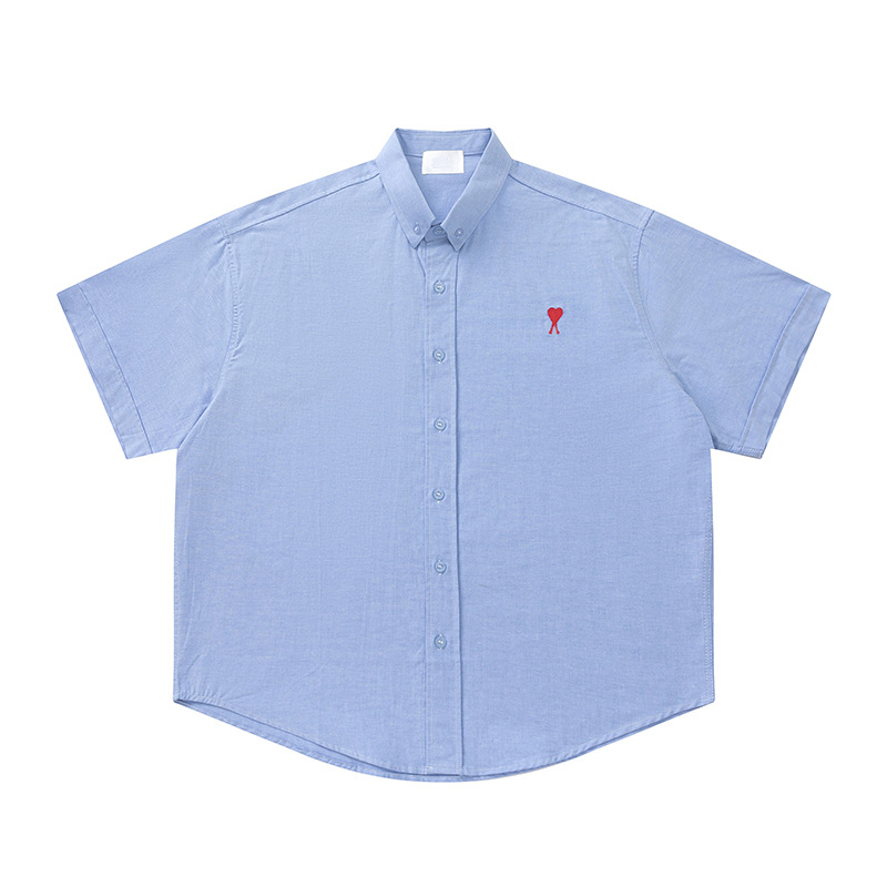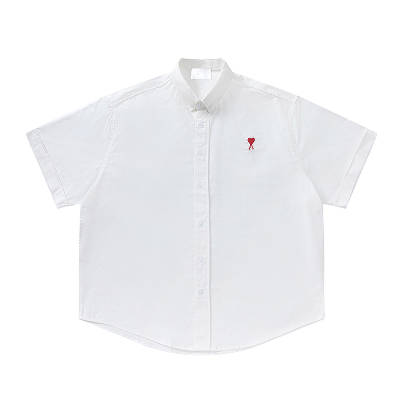 AMI CLAMS 수 놓은 작은 사랑 코튼 셔츠 옷깃 캐주얼 긴 소매 격자 무늬 컬러 셔츠 남성과 여성