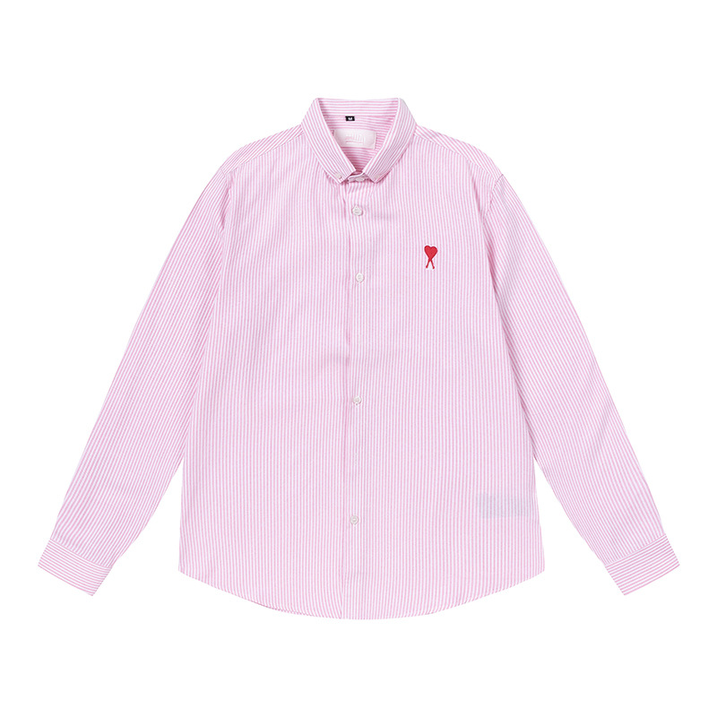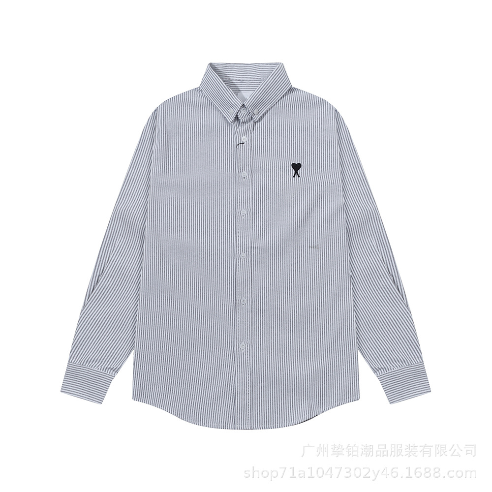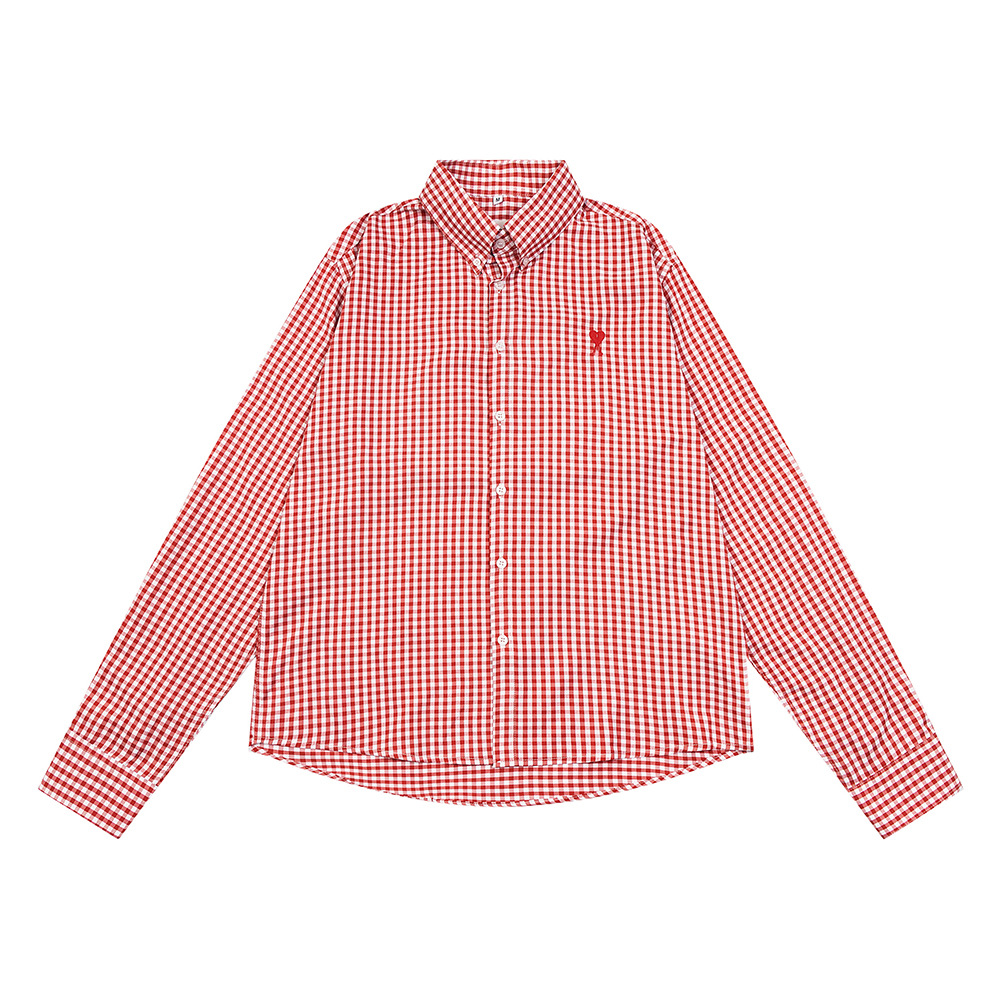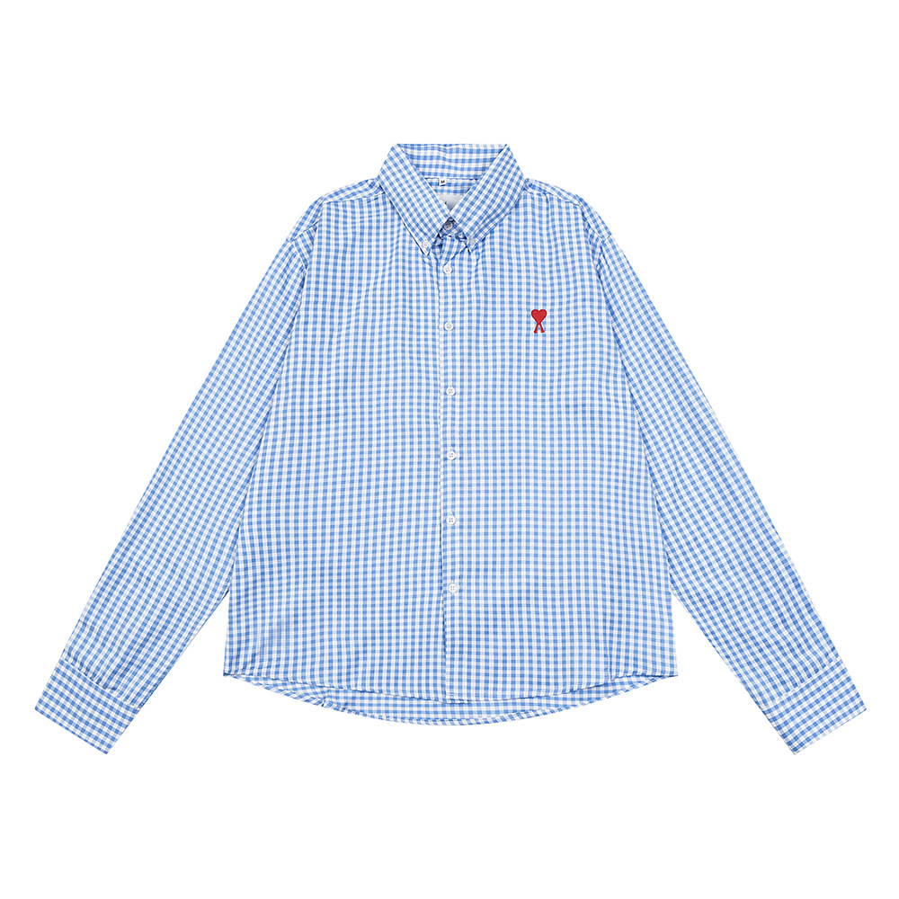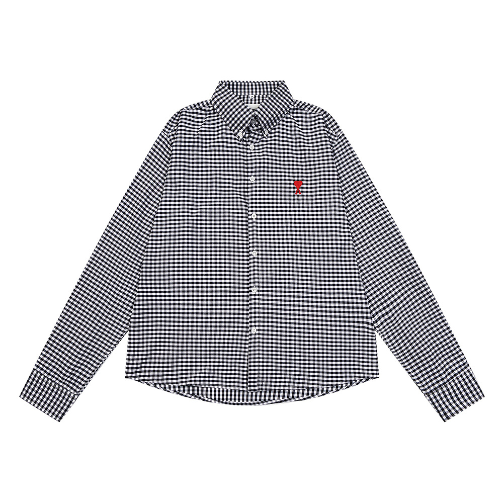 AMI CLAMS 수 놓은 작은 사랑 코튼 셔츠 옷깃 캐주얼 긴 소매 격자 무늬 컬러 셔츠 남성과 여성스토어 가기