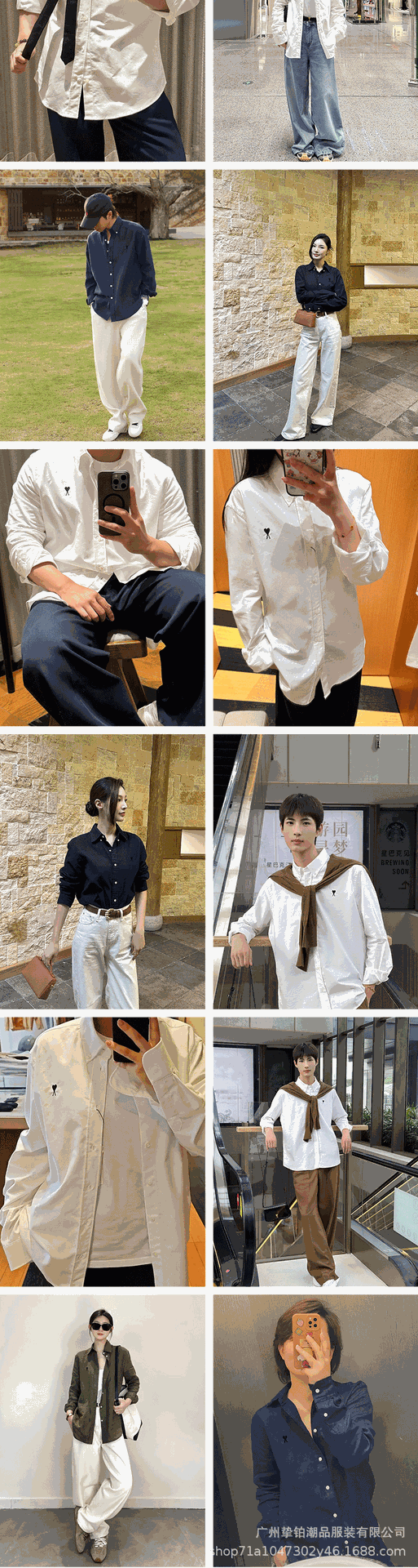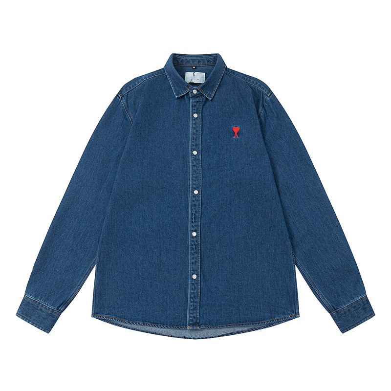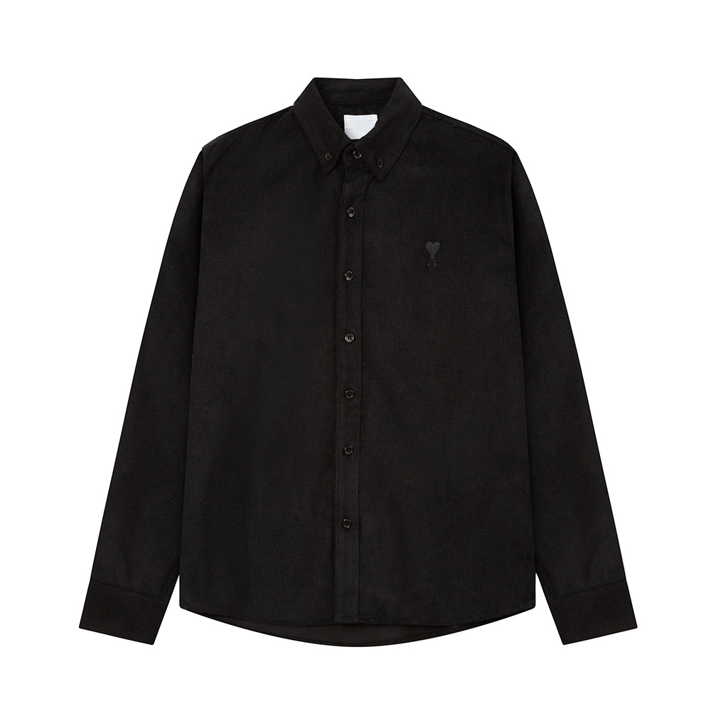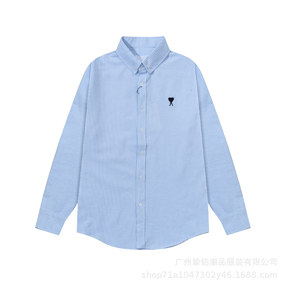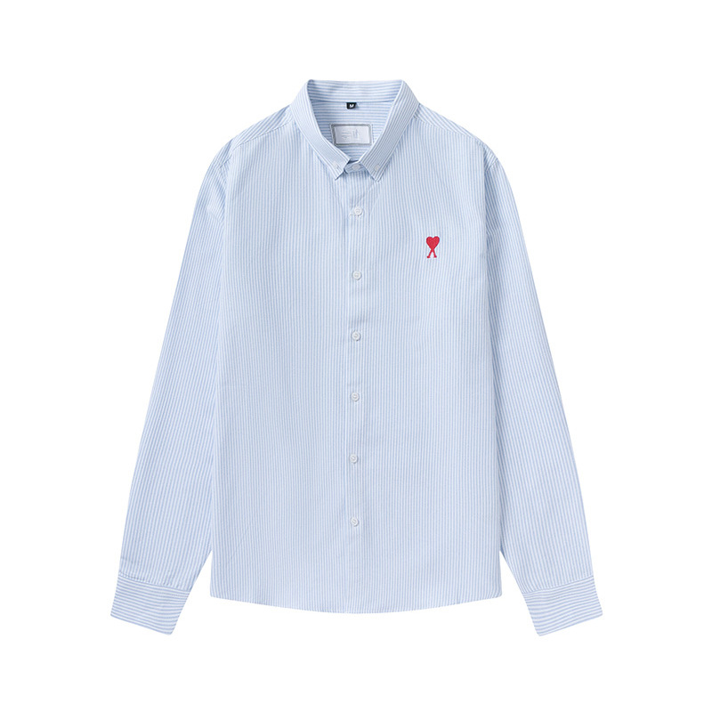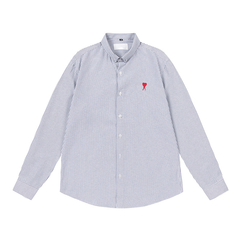 AMI CLAMS 수 놓은 작은 사랑 코튼 셔츠 옷깃 캐주얼 긴 소매 격자 무늬 컬러 셔츠 남성과 여성스토어 가기