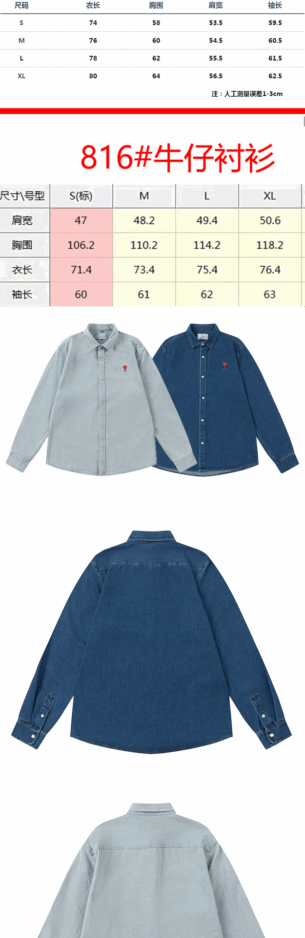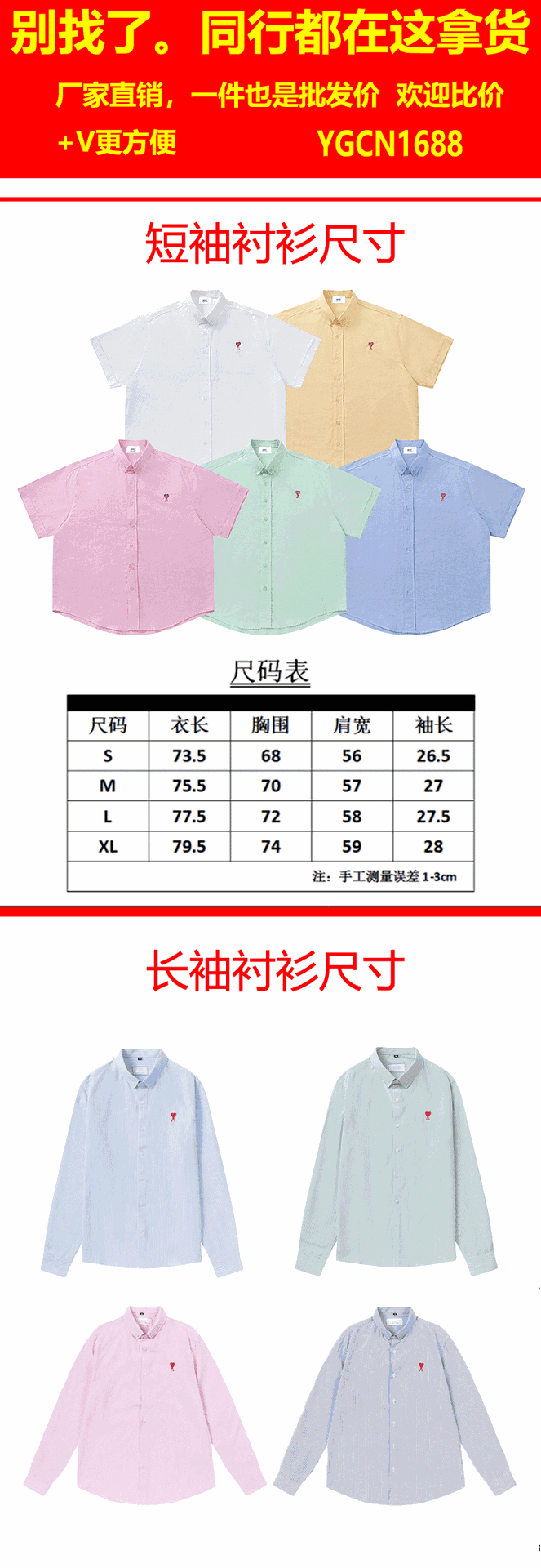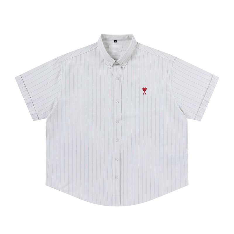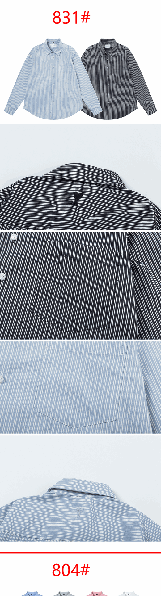 AMI CLAMS 수 놓은 작은 사랑 코튼 셔츠 옷깃 캐주얼 긴 소매 격자 무늬 컬러 셔츠 남성과 여성스토어 가기