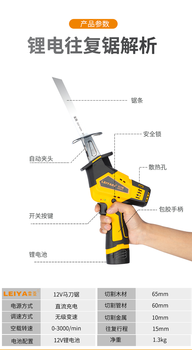 Reya 손전등 전기 가정용 충전식 소형 야외 휴대용 전기 톱 절단 리튬 배터리 세이버 왕복