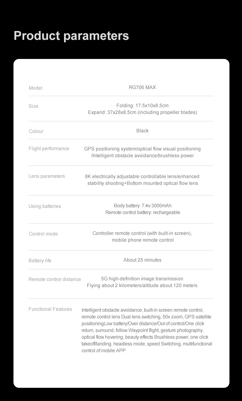 RG706MAX 국경 간 드론 화면 제어 브러시리스 GPS 장애물 회피 듀얼 카메라 항공 촬영 원격 조종 항공기 수출용 드론스토어 가기