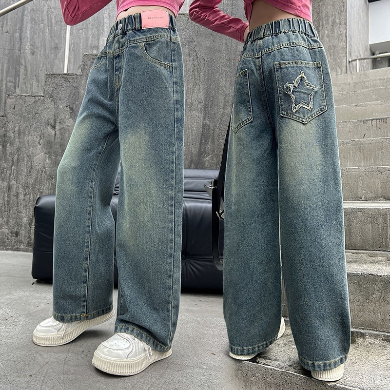 소녀 청바지 스트레이트 다리 바지 가을 중대형 어린이 넓은 다리 바지 2025 새로운 소녀 바지스토어 가기