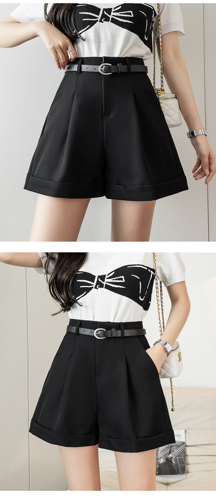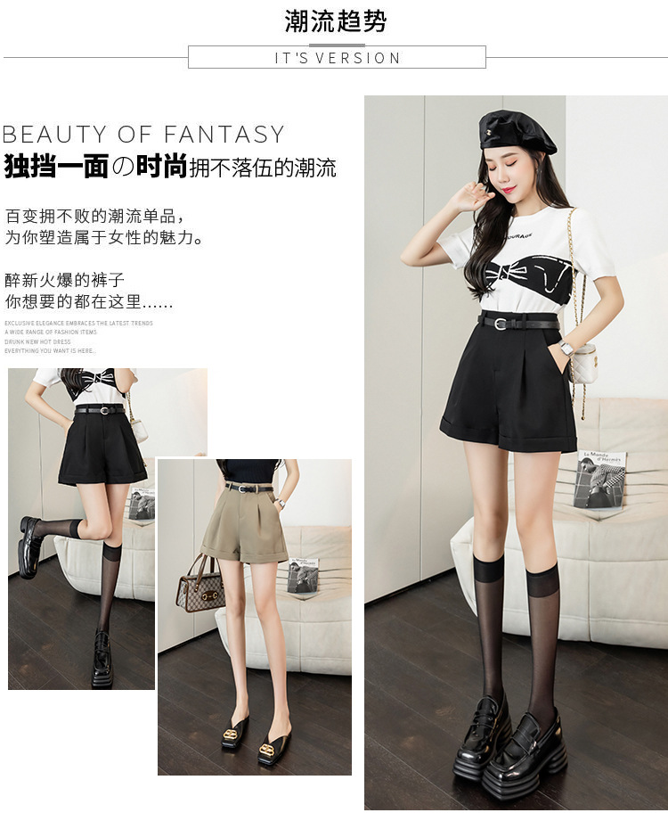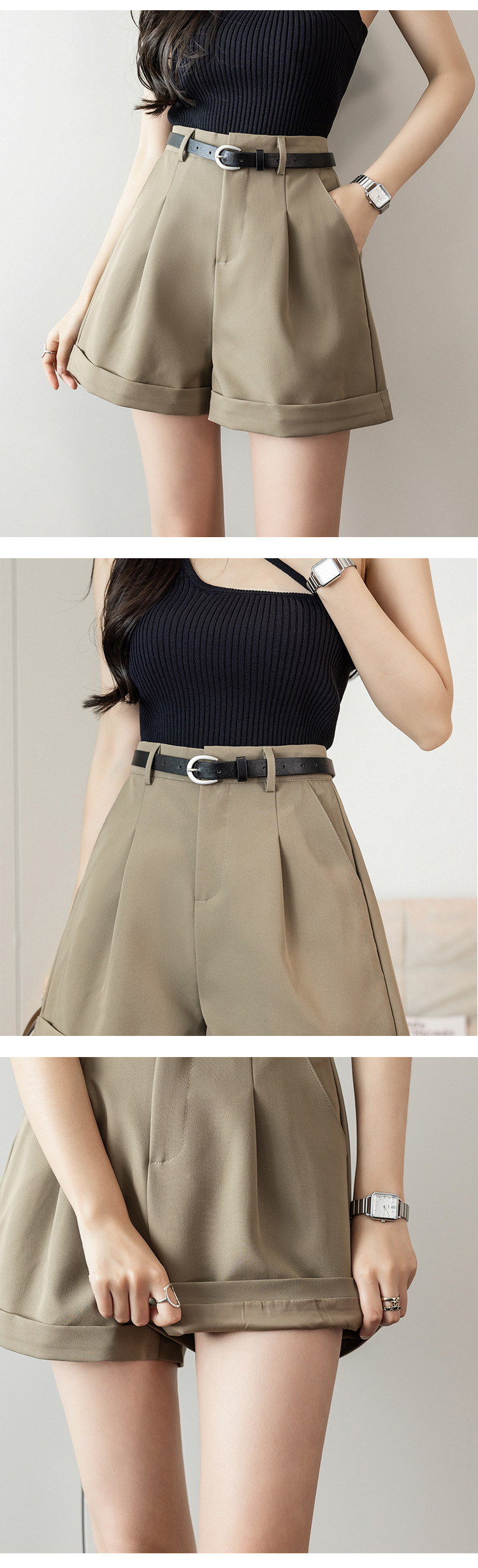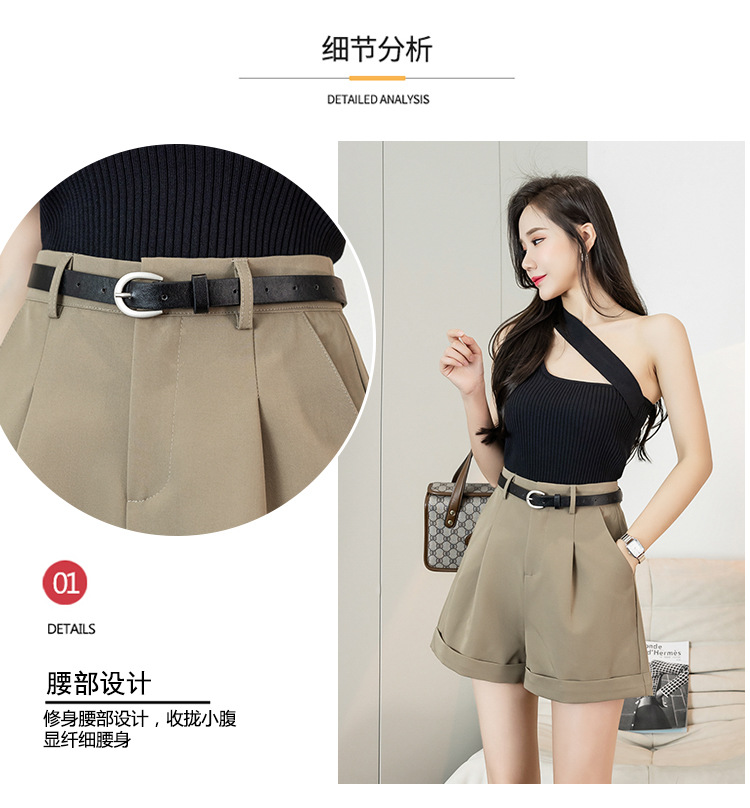 재고 캐주얼 반바지 여성의 봄과 여름 2025 높은 허리 A 라인 넓은 다리 바지 캐주얼 세트 작업 벨트 반바지스토어 가기