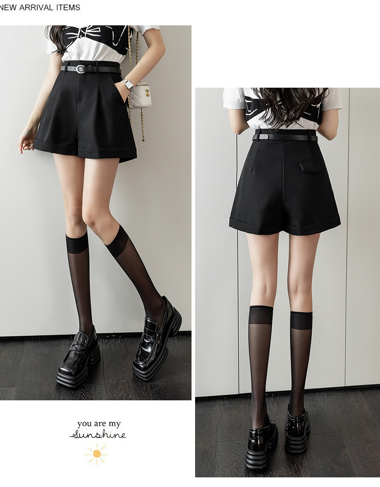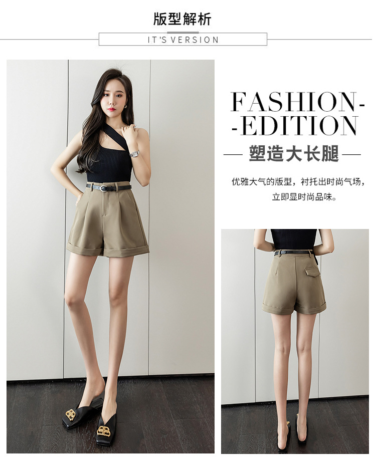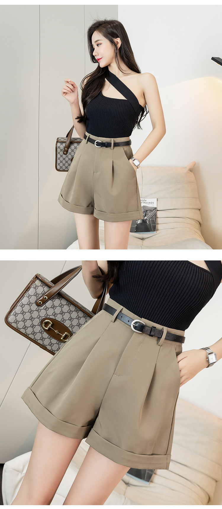 재고 캐주얼 반바지 여성의 봄과 여름 2025 높은 허리 A 라인 넓은 다리 바지 캐주얼 세트 작업 벨트 반바지스토어 가기