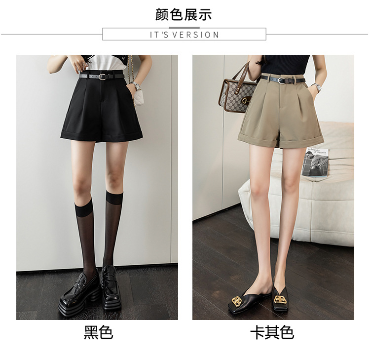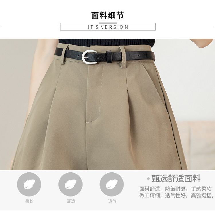 재고 캐주얼 반바지 여성의 봄과 여름 2025 높은 허리 A 라인 넓은 다리 바지 캐주얼 세트 작업 벨트 반바지