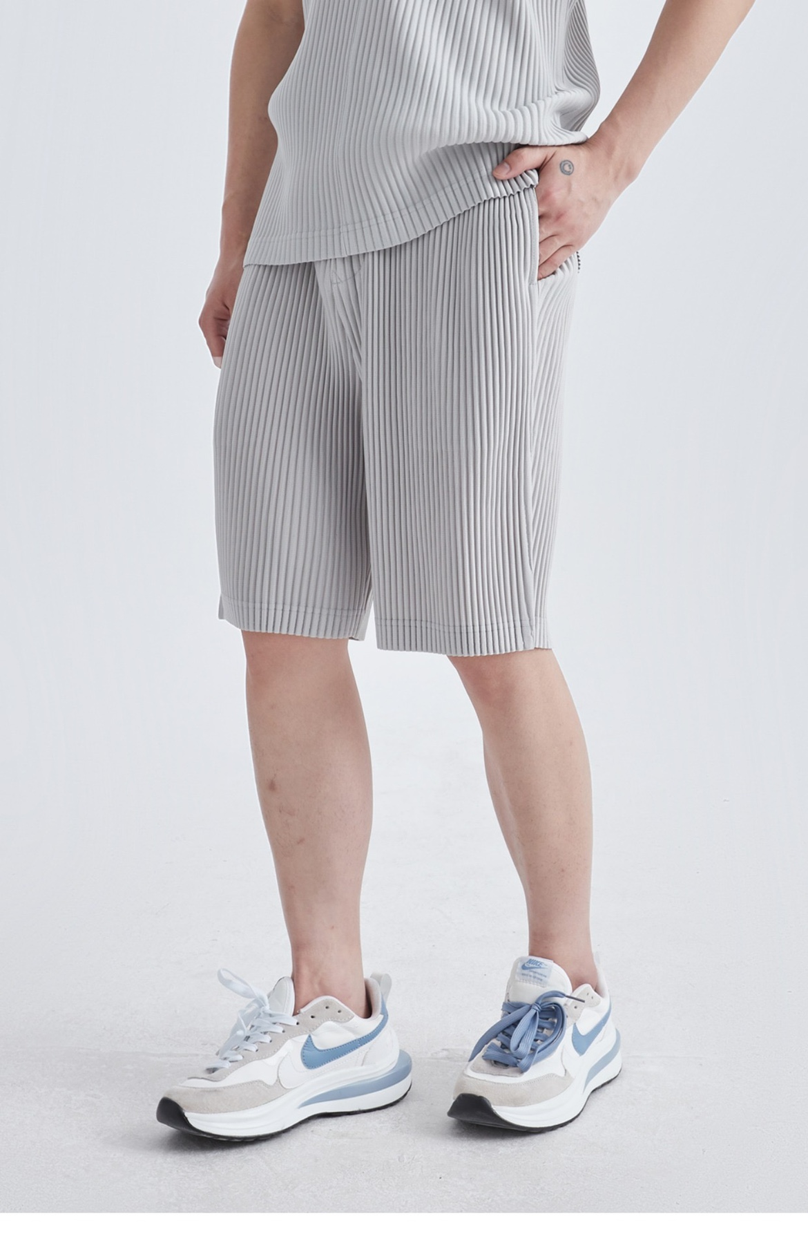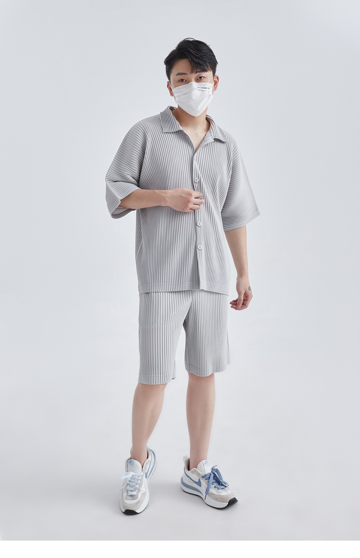 미야케 스타일 주름 남성 반바지 드레이프감 있는 오부바지 루즈핏 다용도 청년 여름 JF148 심플 캐주얼