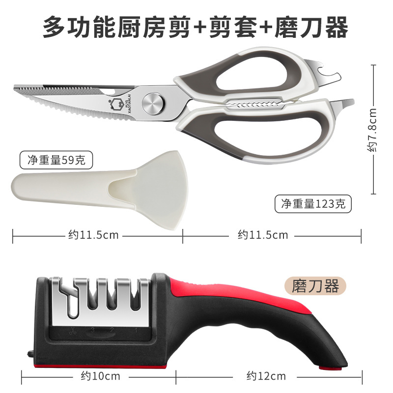 • 흰색 다기능 주방 가위 + 냉장고 자석 칼 세트 + 4단 칼갈이