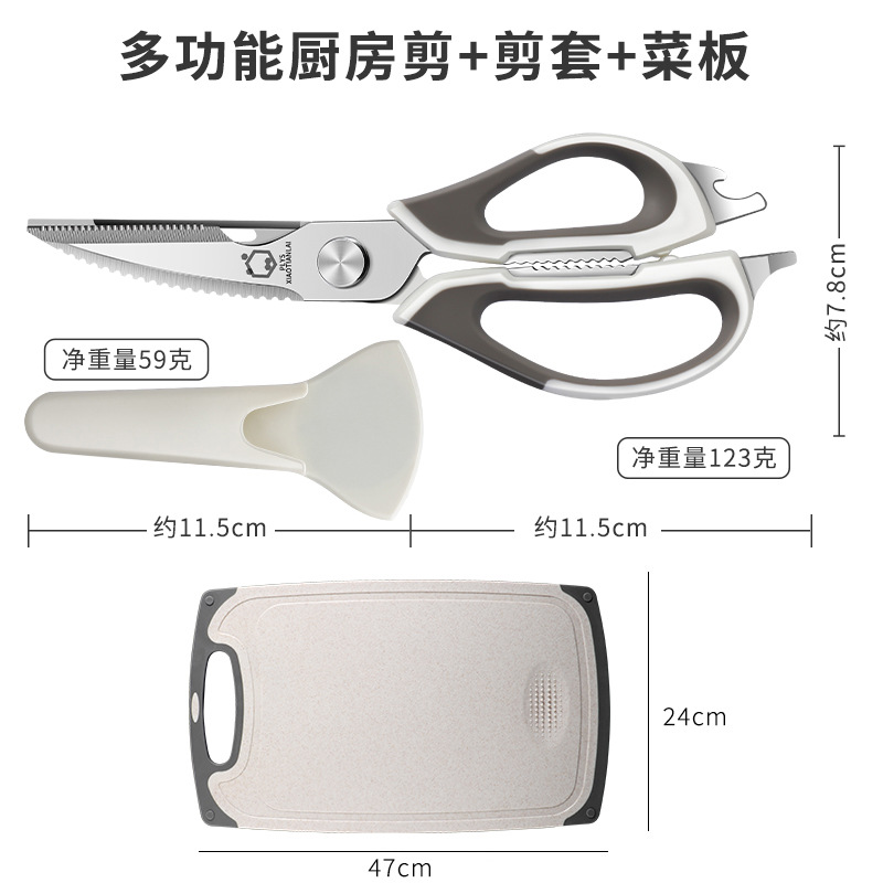 • 【★선택★】화이트 다기능 주방가위 + 냉장고 자석칼 커버 + 베이지 도마