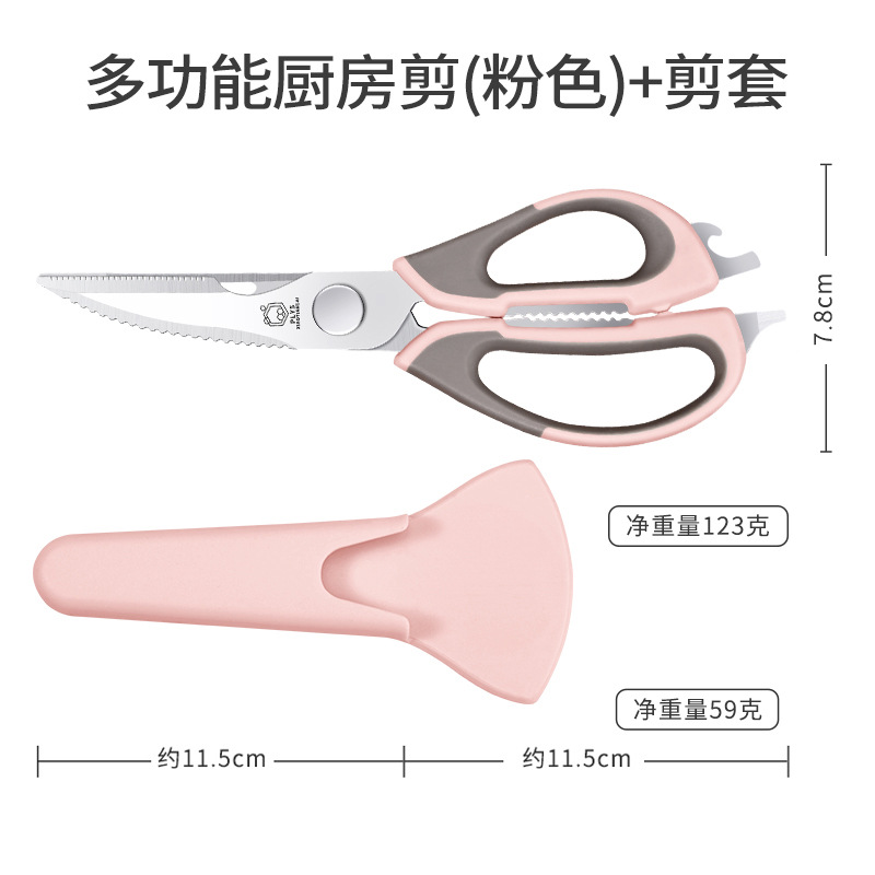 • 핑크 다기능 주방 가위 + 냉장고 자석 칼 세트